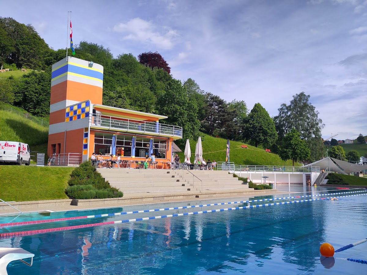 Das Schwimmbad bietet ein Sportbecken, ein Sprungbecken mit Sprunganlage, ein Nichtschwimmerbecken und ein Kinderplanschbecken mit Rutschbahn und Spielbach. Für Kinder hat es zudem eine Spielwiese mit Sandkasten, Kinderschaukeln und Kletterturm. Die Gäste können sich durch das Beachvolleyballfeld, den Bouleplatz, die Slackline, den Tischtennis- und den Tischfussballtisch auch ausserhalb des Wassers sportlich betätigen. Das Restaurant und der Kiosk ist auch ohne Eintritt zugänglich.