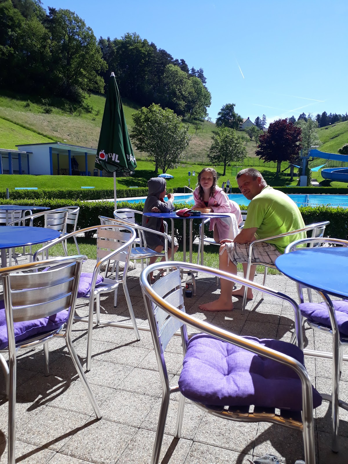 Das kleine Freibad liegt eingebettet zwischen Hügeln und windgeschützt im Weiler Ledi zwischen Lachen und dem Dorf.