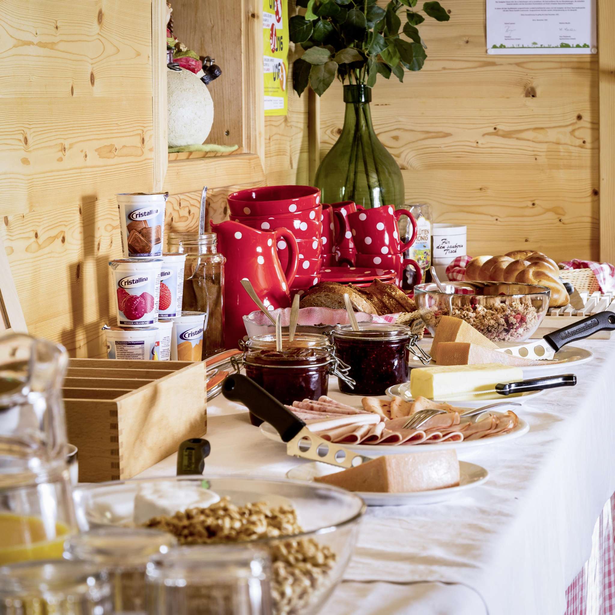 Am nächsten Morgen stärken Sie sich beim Älplerfrühstück mit frischer Alpenbutter, aromatischer Bergmilch und frisch gebackenem Brot und Zopf für einen neuen erlebnisreichen Tag auf der Alp.