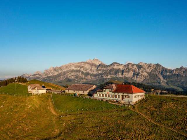 Das heimelige Berggasthaus mit schöner Aussicht auf den Alpstein und ins Tal liegt mitten im Wandergebiet zwischen den idyllischen Appenzeller Alpen.