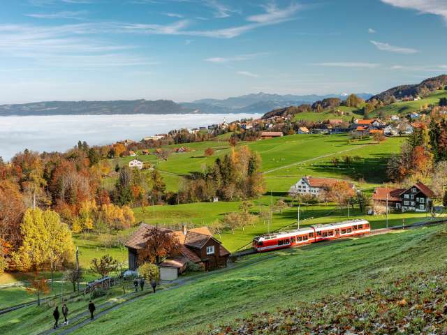 • Startpunkt: Tourist Information Bahnhof Heiden. Anreise: bereits die Anreise mit der im Preis inbegriffenen Zahnradbahn ab Rorschach (im Sommer mit offenen, nostalgischen Wagen) ist ein echtes Erlebnis.