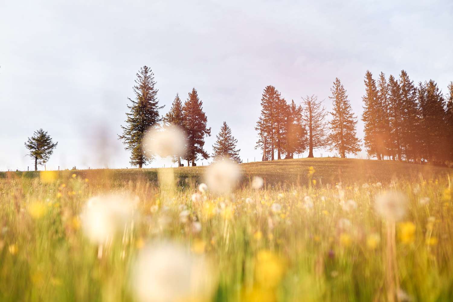 Rond om Gääs: Auf einer Wandung im Erholungsraum Gais erfahren Sie Besonderheiten zur Gaiser-Landschaft mit ihren Bauernhöfen, Wäldern, Streuwiesen und Wissenswertes zur Biodiversität.