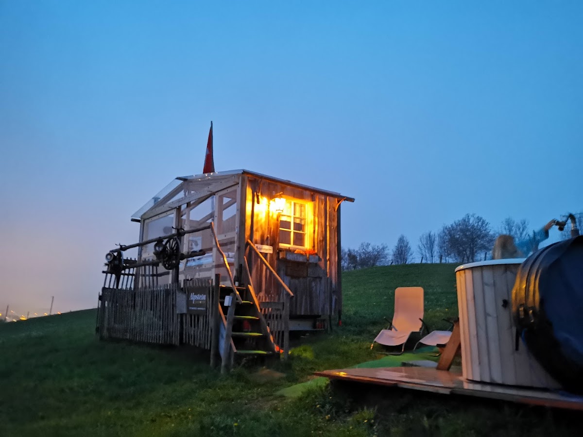 Holzfass mit eigenem Quellwasser auf dem Bauernhof der Familie Dietrich in Herisau, dem Eingangstor zum Appenzellerland. Duschen, Toiletten vor Ort. Möglichkeit mit Nachtessen zu kombinieren