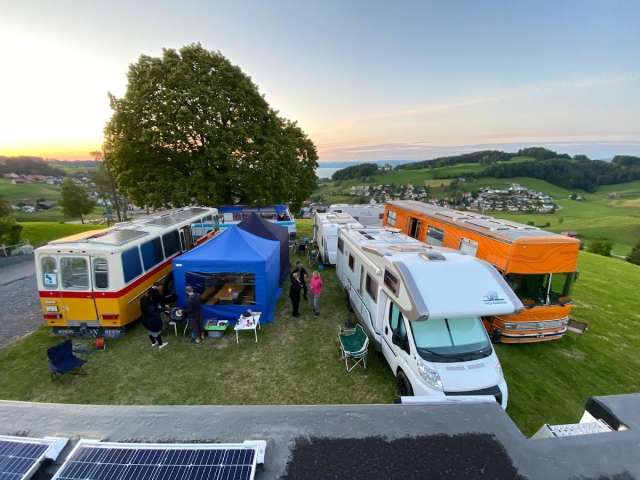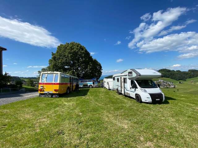 Unter der Linde vor dem Hof steht ein Campingplatz zur Verfügung – mit herrlicher Aussicht auf das Dorf Heiden und den Bodensee. Dusche und WC sind im Haus nebenan verfügbar. Interessierte melden sich direkt bei Fabienne und Christoph Kappeler.