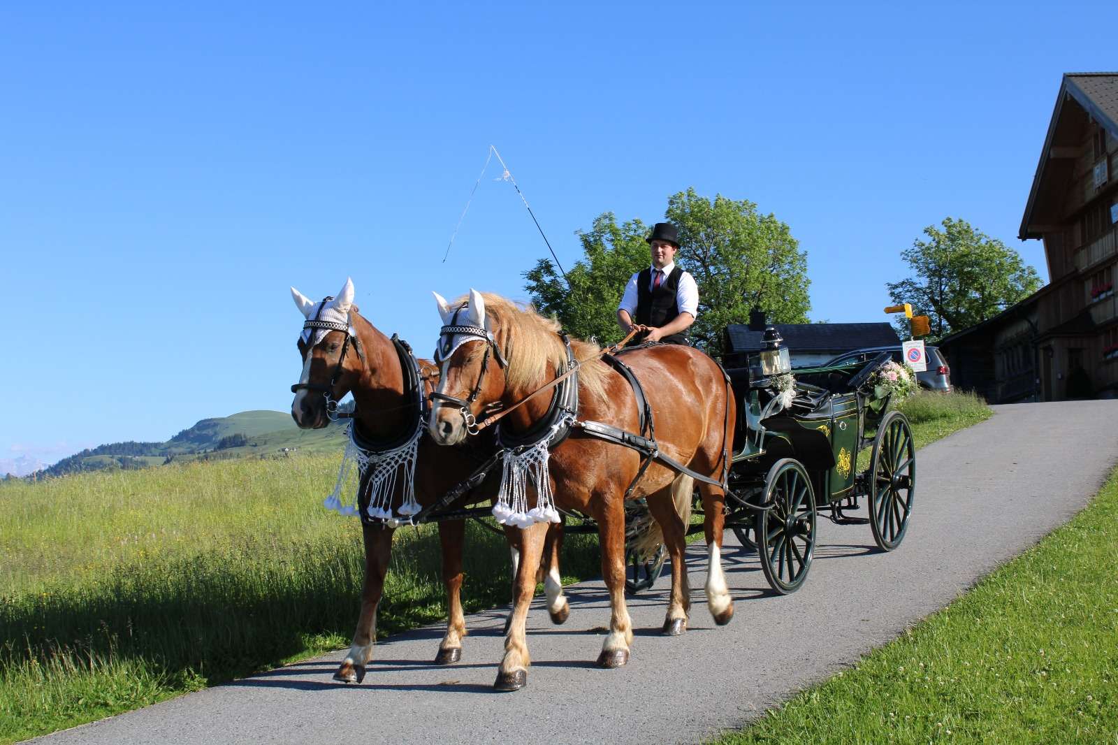 Als gelernter Hufschmied und Landwirt bietet Ruedi Biser interessante, beruhigende und abwechslungsreiche Ausfahrten mit seine Pferden an. Es stehen verschiedene Kutschen, passend zu jedem Anlass, zur Verfügung: