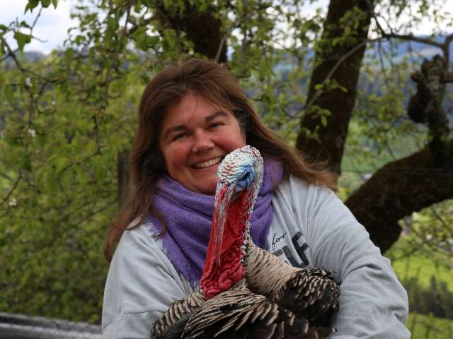 Auf dem Tiererlebnishof in Urnäsch leben Alpakas, Lamas, Kaninchen, Hühner, Truthähne und Katzen sowie die Hündin Colline.