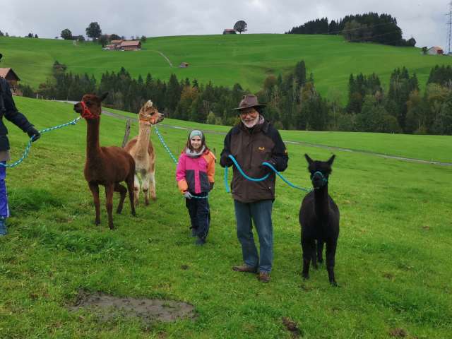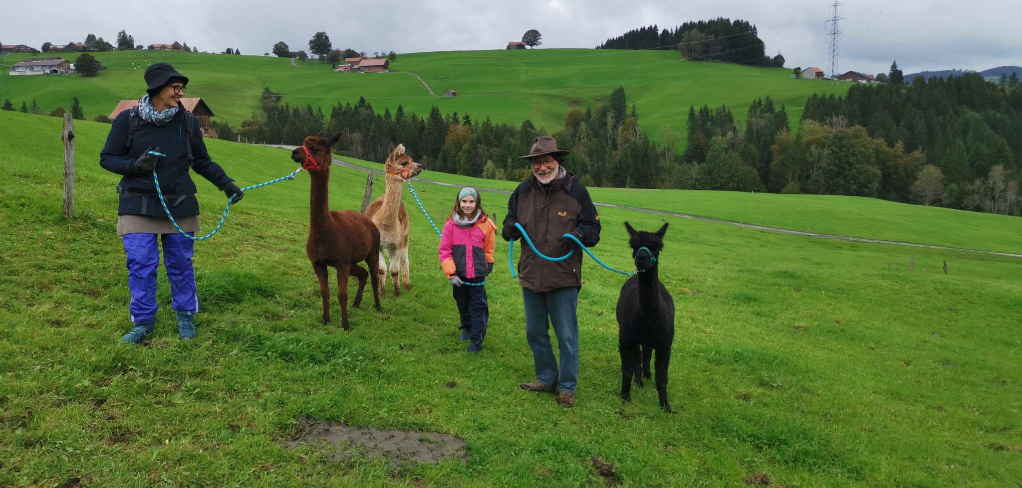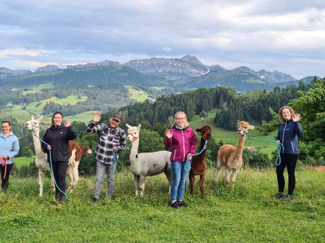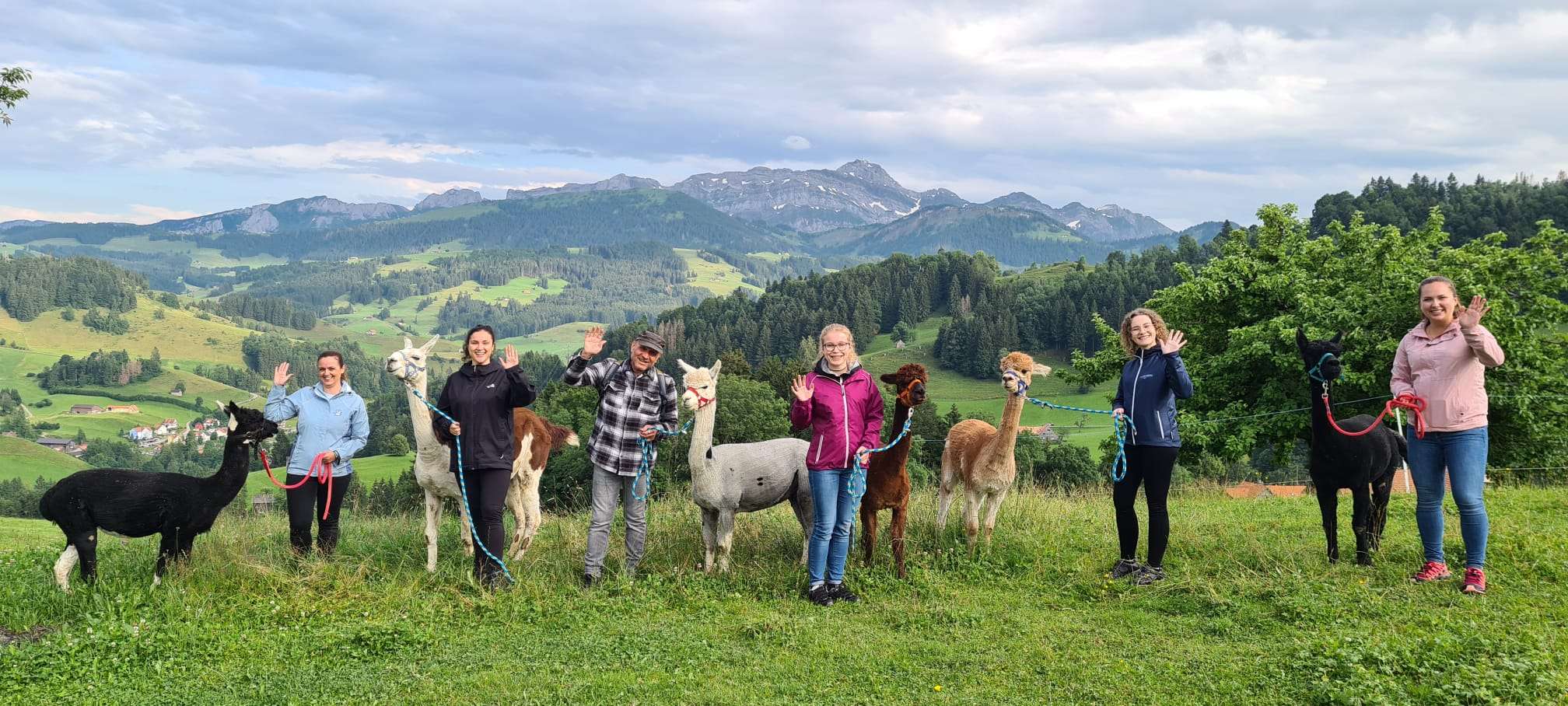 Alpaka- und Lama-Trekking auf dem Tiererlebnishof im Appenzellerland mit wunderschönem Panorama und Blick zum Alpstein