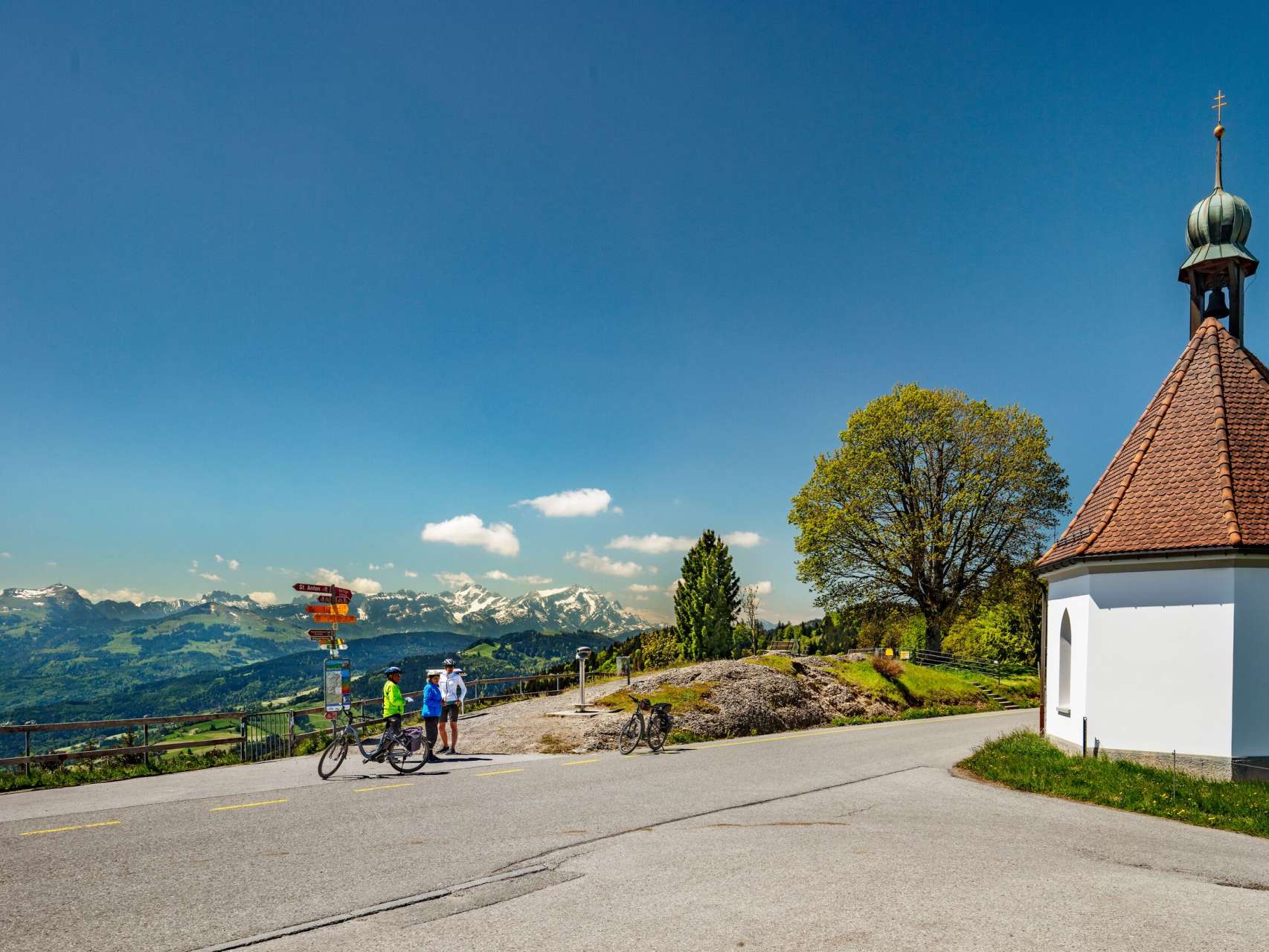 Die hügelige Wanderung führt nach St. Anton. Der Aufstieg am Anfang wird mit einer fantastischen Weitsicht belohnt, die zum tiefen Durchatmen ermuntert. Nach dem Start in Kaien geht es schon bald aufwärts. Weite Wiesen und Höfe prägen das Bild entlang des meist asphaltierten Weges. Neben Kühen sind am Wegrand Pferde und Esel anzutreffen. Bei Tanne angelangt, geht es nur noch leicht auf und ab. Auf dieser Hochebene sehen Sie mit jedem Meter, den Sie St. Anton näherkommen, mehr Berge. Auf der einen Seite erstreckt sich das Panorama bis zu den Österreicher Alpen, auf der anderen erhebt sich der Säntis majestätisch.