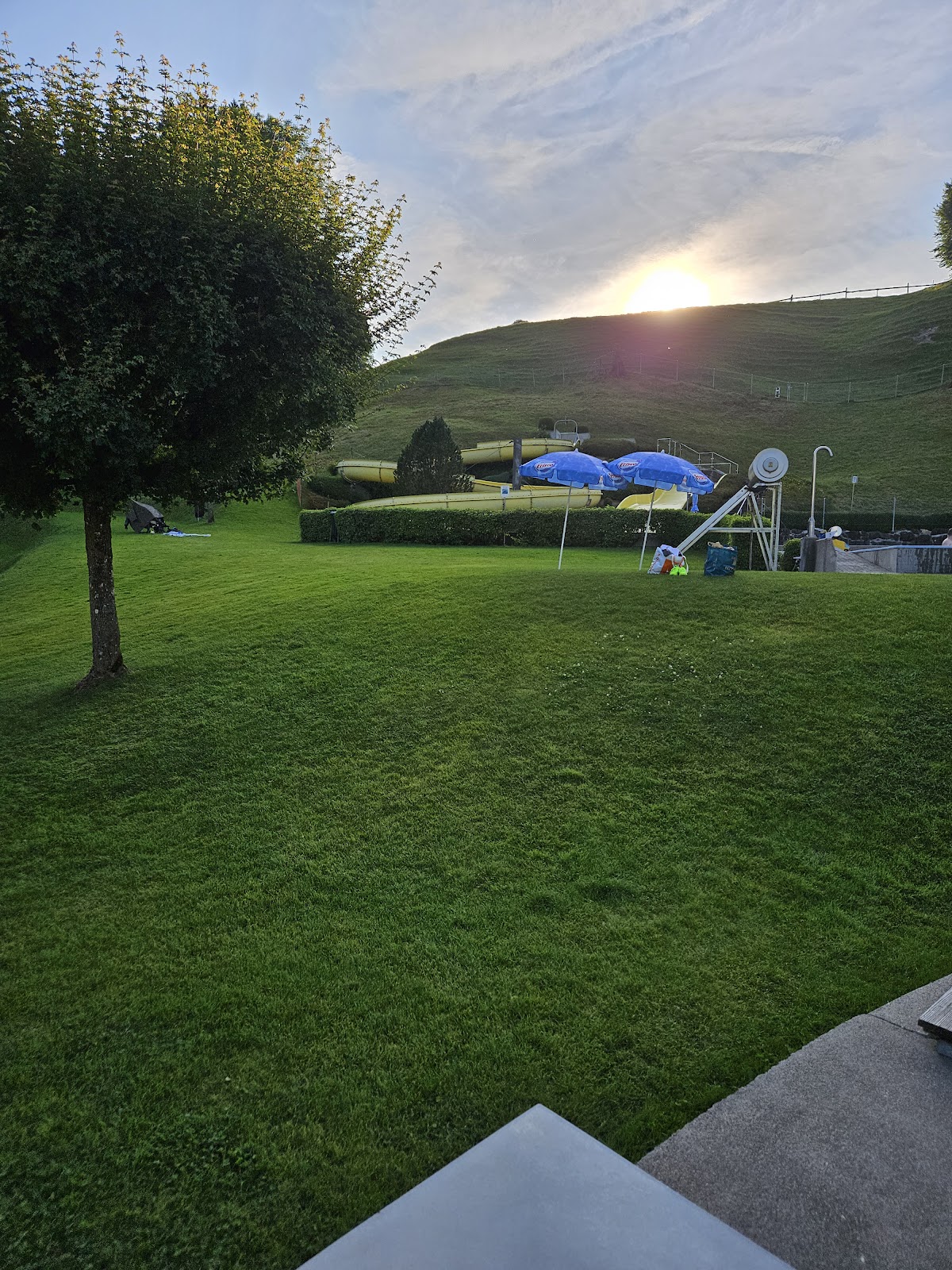 Pluspunkte werden auch für die grosszügigen Garderoben verteilt. Für eine erhöhte Privatsphäre gibt es zusätzliche Einzelkabinen. Auch das Restaurant kann sich sehen lassen. Eine grosse schattige Terrasse und Snacks bis hin zu Menüs laden auch ohne zu baden zum Verweilen ein!