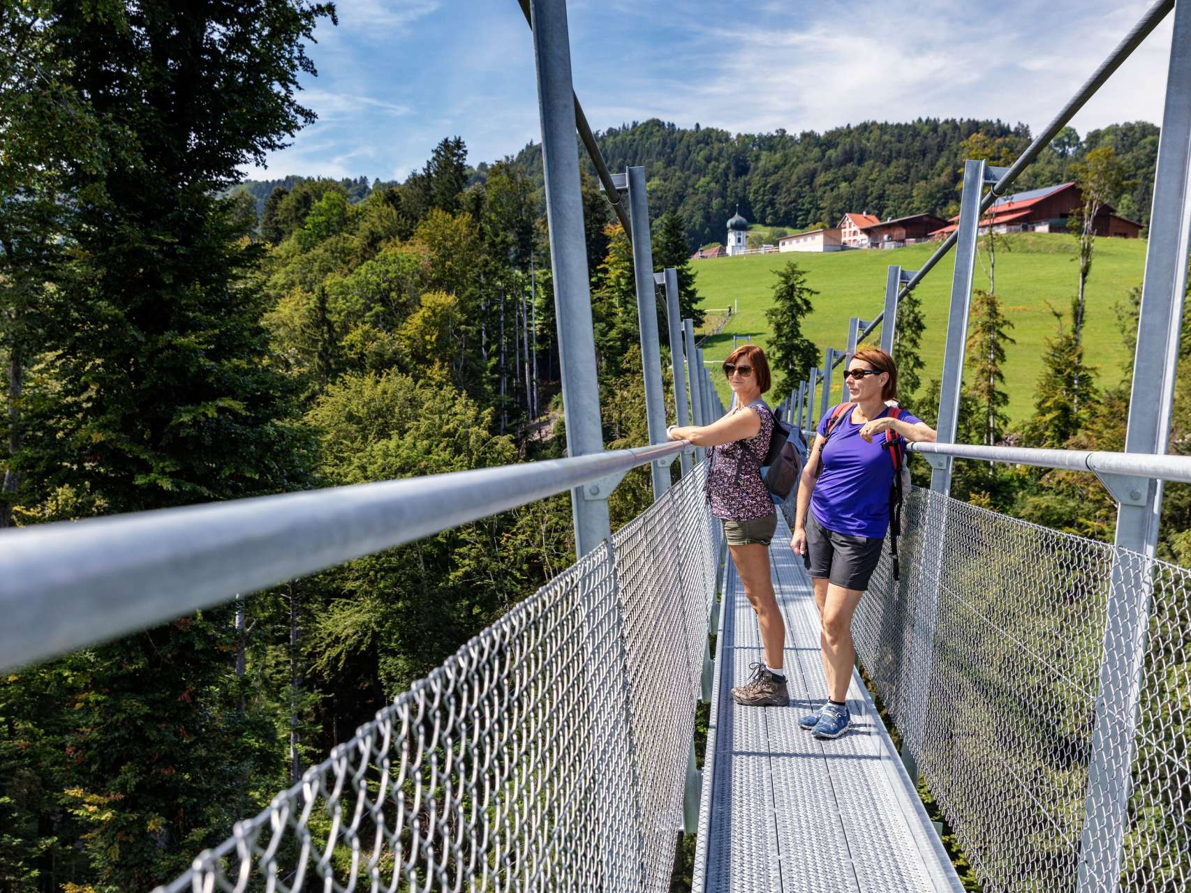 Wandern Sie auf dem Wanderweg Richtung Grub AR zum Mattenbachtobel. Seit Ende April 2019 verbindet hier eine spektakuläre Hängebrücke die Schwestergemeinden Grub AR und Grub SG. Weiter wandern Sie zum Höhepunkt dieser Rundtour - dem Fünfländerblick (Schweiz, Österreich, Bayern, Württemberg und Baden). Eine traumhafte Aussicht über den Bodensee und unsere Nachbarländer erwartet Sie. Ein Abstecher in die Wirtschaft Rossbüchel oder später im Restaurant Treichli lohnen sich in jeder Hinsicht. Nun folgen Wegabschnitte durch Wälder und Wiesen zum Schloss Wartensee. Von da reisen Sie mit den Appenzeller Bahnen gemütlich nach Heiden zurück.