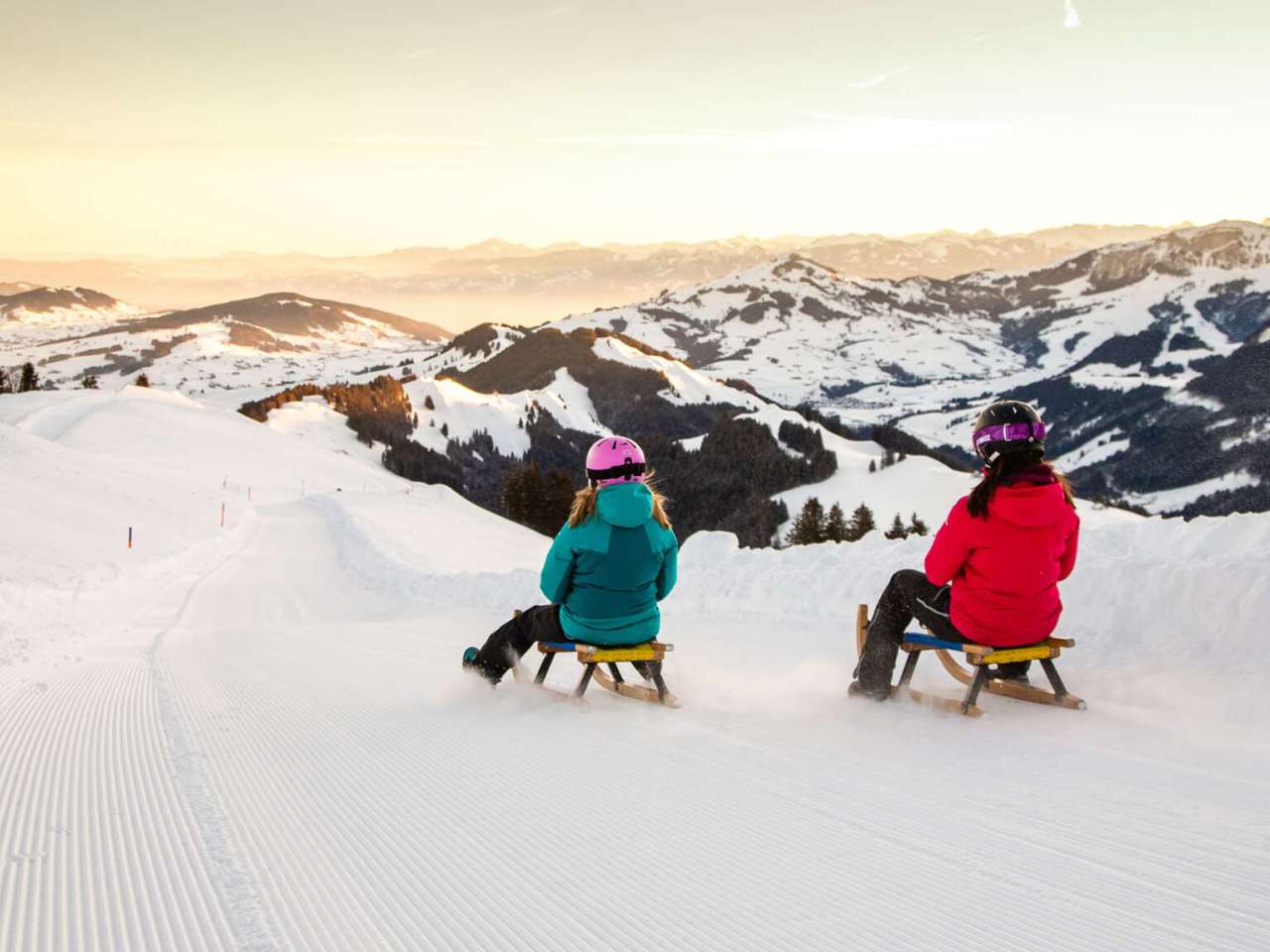 Mit rund 7 Kilometern Länge ist der Schlittelweg vom Gipfel zurück zur Talstation nicht nur der längste der Ostschweiz. Er ist auch einer der abwechslungs- und aussichtsreichsten. Den Startpunkt beim Gipfelkreuz erreichem Sie bequem mit der Luftseilbahn. Die Strecke führt über die Scheidegg, Chlepfhütten, Roos und zurück zur Talstation Jakobsbad. Es hat einzelne sehr anspruchsvolle Streckenabschnitte, weshalb der Schlittelweg für Kleinkinder nicht empfohlen wird. Der Schlittelweg wird nicht künstlich beschneit. Daher kann es vorkommen, dass einzelne Abschnitte wenig oder teils keinen Schnee haben. Und es muss mit den beim Schlitteln typischerweise entstehenden Wellen und Buckeln gerechnet werden.