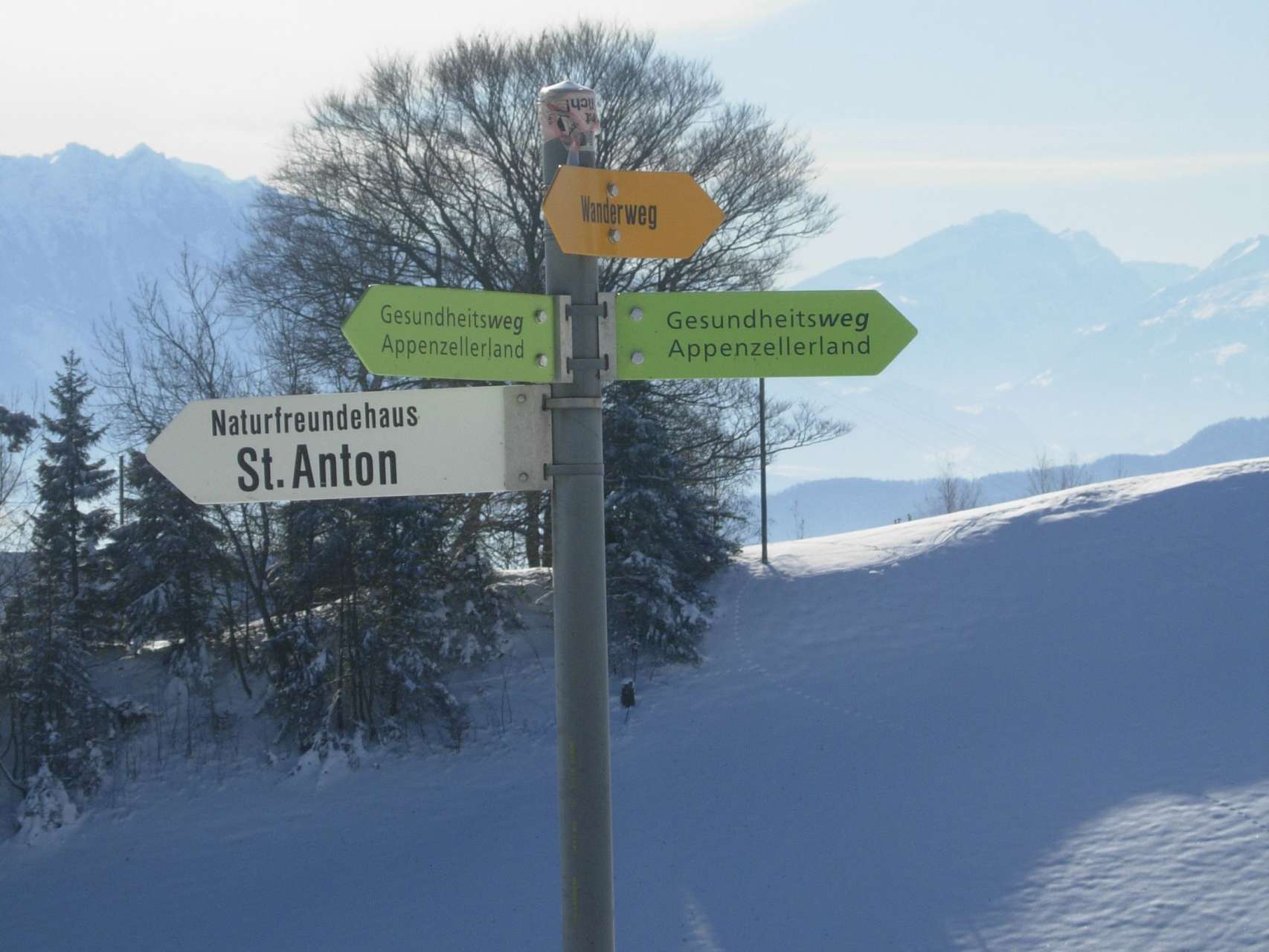 Wunderschöne Route um das Gebiet des St. Anton (Einkehrmöglichkeiten vorhanden) mit herrlicher Aussicht auf den Bodensee, das Rheintal und das Alpsteingebiet. Der Weg St. Anton - Scheidweg - Kaien wird im Winter präpariert und ist das ganze Jahr als Wanderweg Route 986 beschildert.