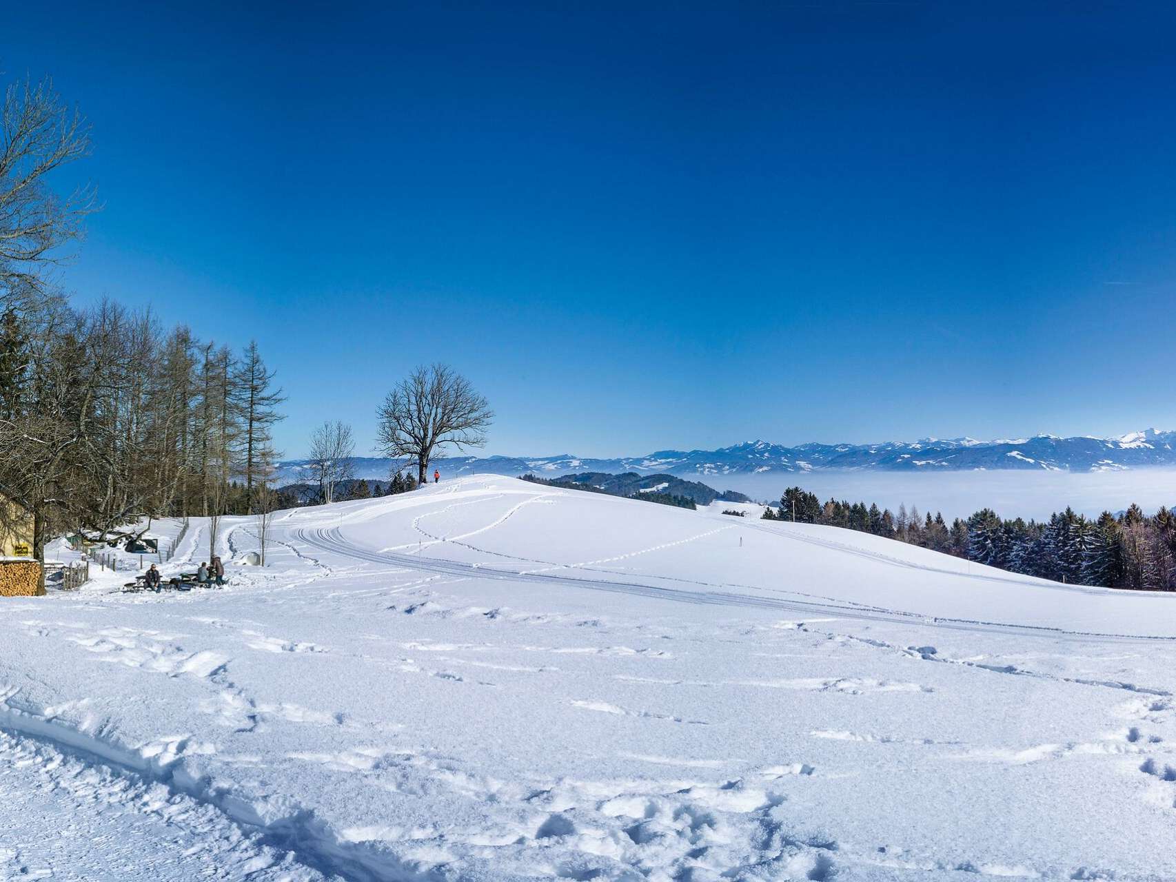 Die Ruhe in der verschneiten Natur geniessen an kalten Wintertagen im Gebiet zwischen Wald und St. Anton nicht nur Wanderer, sondern auch Schneeschuh- und Langläufer. Die Landschaft ist von einem weissen Teppich überzogen, das Geäst der Bäume verzuckert, die Tannen schneeverhangen. Und die Bauernhöfe scheinen unter der Schneedecke im Winterschlaf versunken.