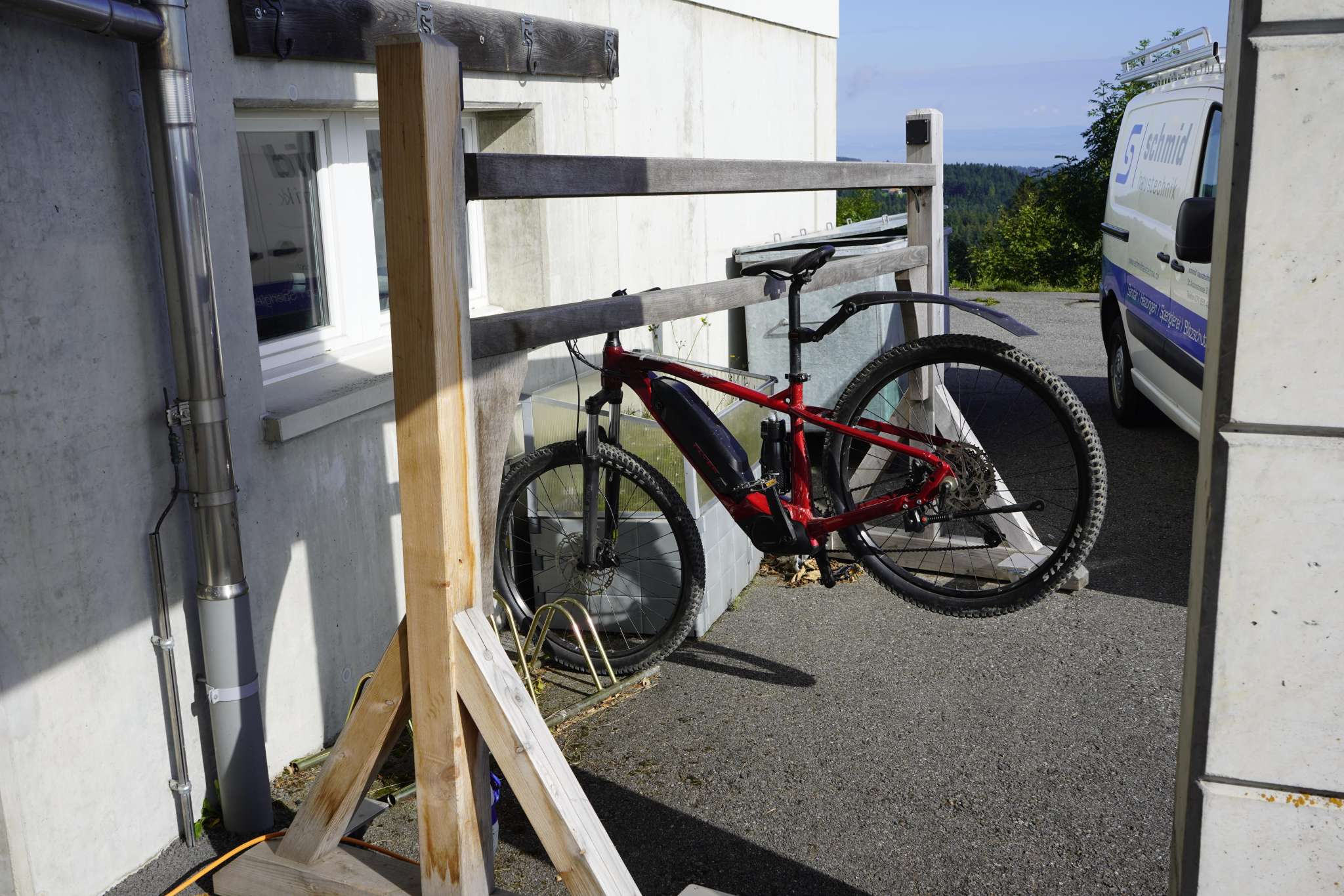 Die Lademöglichkeit ist ein Holzständer, welcher über 2 Steckdosen verfügt. Es ist ein Ladegerät erforderlich. Der Ständer befindet sich unterhalb des Restaurants.