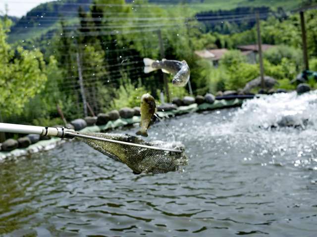 Ein ganz besonderes Erlebnis ist der Besuch dieser Bachforellenzucht inmitten von 6 Hektaren malerischer Landschaft. Klaus Signer hat die einstige Kiesgrube von seinen Eltern übernommen und erzählt voller Herzblut viel Spannendes über sein Hobby. Er füttert die Fische täglich von Hand mit Biofutter, kontrolliert das sprudelnde Wasser, das für den Sauerstoff im Teich sorgt und reinigt die Becken.