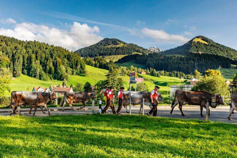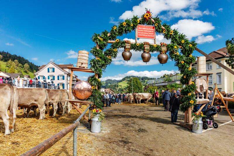 Im Herbst, wenn die Bauern mit ihren Kühen von der Alp zurückkehren, finden in Appenzell Ausserrhoden die Viehschauen statt. Dabei werden die schönsten und leistungsstärksten Kühe prämiert.