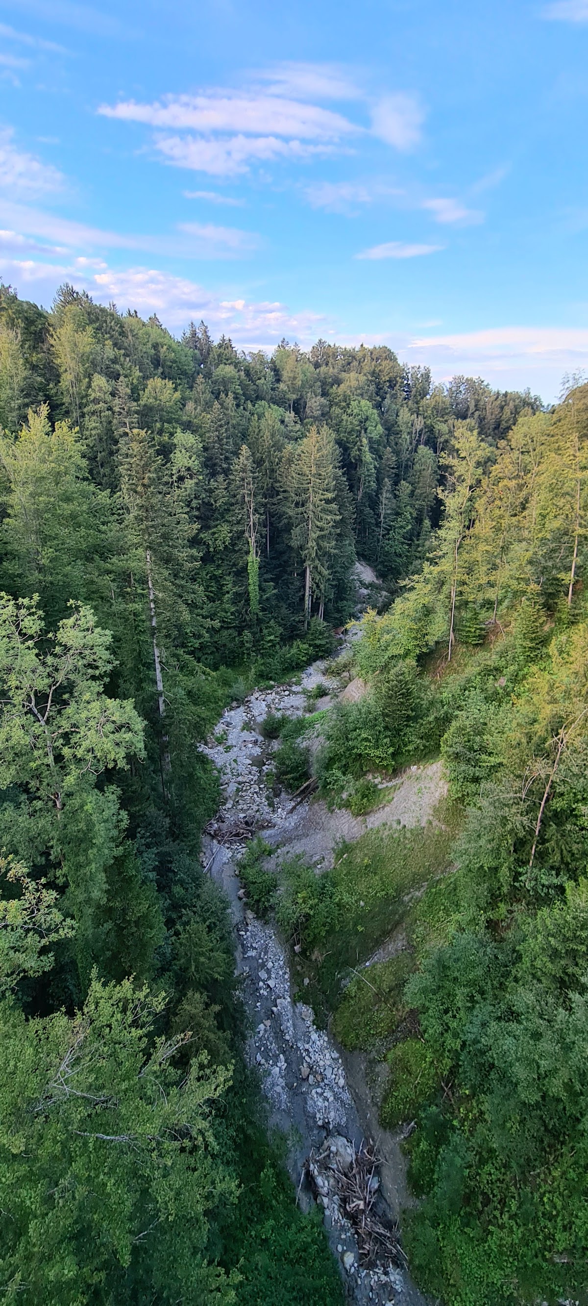 Die Brücke ist nur für Schwindelfreie. Der höchste Punkt der Brücke findet sich rund 40 Meter über der Schlucht.