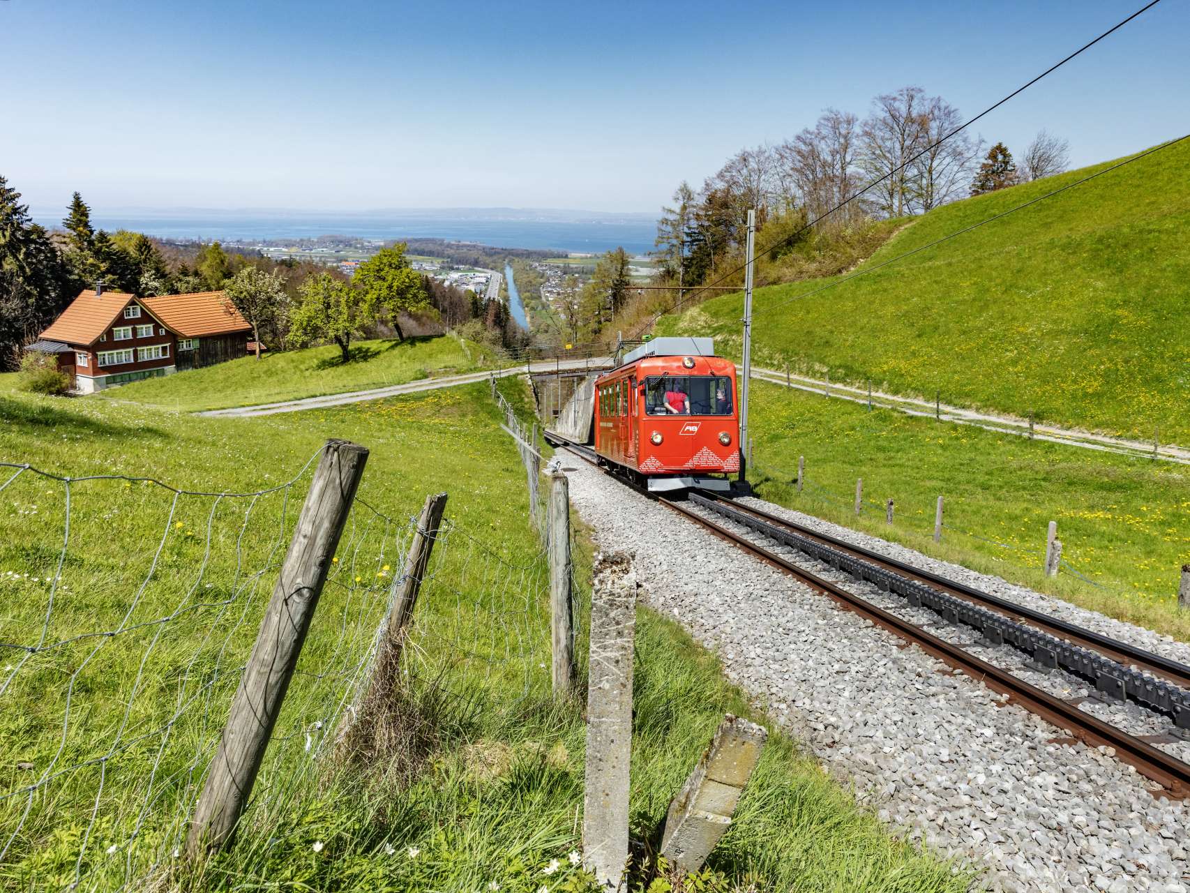 Geniessen Sie während der Fahrt den Ausblick über den Bodensee bis nach Vorarlberg und ins Alpsteingebiet.