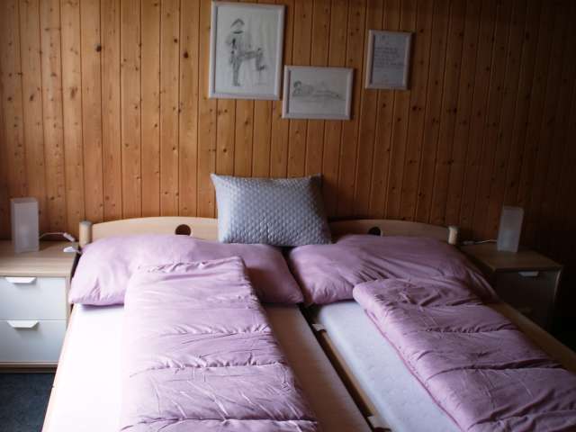 Idyllisches und gemütliches 6.5-Zimmerhaus an ruhiger Lage. Das Ferienhaus liegt etwas abgelegen von Degersheim (ca. 2km ins Zentrum). Die direkte Zufahrt zum Haus ist möglich, es stehen Parkplätze direkt beim Haus zur Verfügung. Das Grundstück ist 850 m2 gross. Das Haus umfasst 120 m2 Wohnfläche mit drei Schlafzimmern, einem Babyzimmer, zwei Nasszellen, Küche mit Eckbank, Wohnzimmer mit Ecksofa und Wohnstube mit grossem Tisch und Eckbank. Es gibt einen Abstellraum für Velo, Bikes, Skis, Schlitten, Kinderwagen etc. Ausserdem steht eine Waschmaschine zur Verfügung. Ein grosser Garten (eingezäunt) lädt zum gemütlichen Verweilen ein. Das Haus bietet Platz für bis zu sechs Personen.