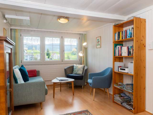 Helle, sonnige Wohnung mit Wohnküche, gut eingerichtet in einem typischen Appenzeller Haus. Herrliche Fernsicht, ruhig und zentral gelegen.