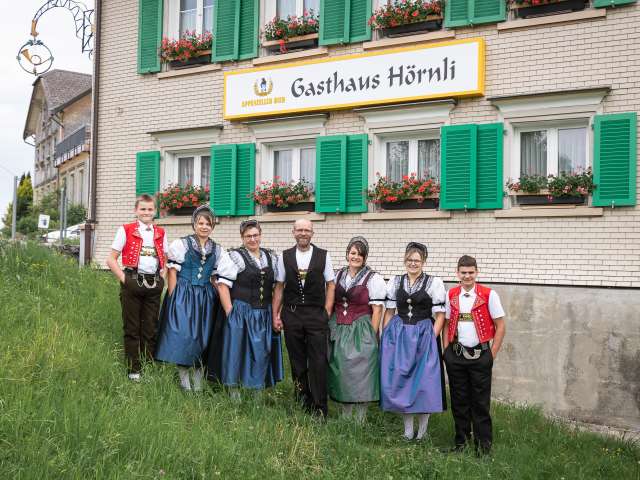 Ein bisschen ausserhalb vom Dorf befindet sich unser Gasthaus an der Strasse Richtung Urnäsch, zu Fuss sind wir von der Posthaltestelle in etwa 15 min zu erreichen. In der gemütlichen Gastube hat es Platz für 60 Personen. Im oberen Stock hat es einen schönen Saal für 70 Personen und draussen finden auf unserer Terrasse nochmals 30 Personen Platz.