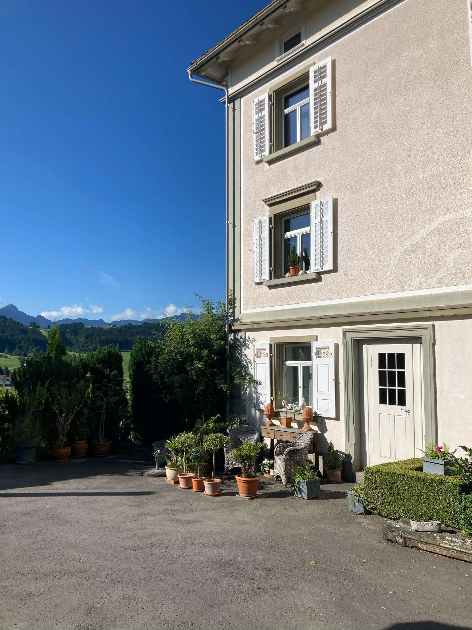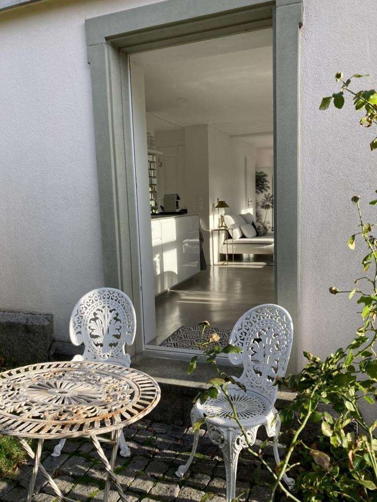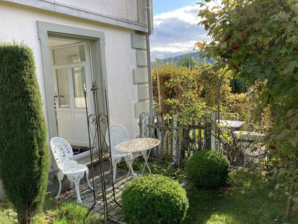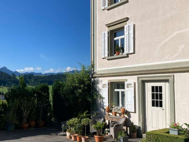 Das kleine Loft befindet sich im Erdgeschoss eines herrschaftlichen Hauses und ist sehr ruhig gelegen. Es ist komfortabel und modern eingerichtet: edles Bad in Schwarz und Messing, weisse Kalkputzwände, geheizter Design-Betonboden, gut ausgestattete Küchenkombination. Der grosse Raum ist unterteilt in Bereiche für Kochen, Essen und Schlafen. WLAN und Waschmaschine sind vorhanden. Dank der vielen Fenster ist das Loft von Licht durchflutet. Ein direkter Zugang zum Garten führt zu einem Sitzplatz. Die Aussichten auf Hügel und Berge machen Lust auf Wandern und Biken. Bahnhof und Dorfplatz mit Restaurants und einem Einkaufsladen sind nur wenige Schritte entfernt.