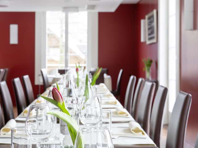 Der stilvoll eingerichtete Gastraum eignet sich auch sehr gut für Bankette und Familienfeiern. Für Gruppen öffnen wir auch gerne abends.