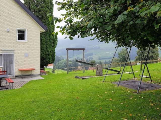 Geschirrspüler und Internetanschluss sind vorhanden. Freizeit- und Spielmöglichkeiten im und ums Haus, grosse Spielwiese mit diversen Spielgeräten, Tischtennis-Tisch. Freibad und Hallenbad in der Region. Diverse Wanderwege befinden sich in unmittelbarer Nähe. Auch Ausflüge ins Bodenseegebiet oder Exkursionen nach St. Gallen empfehlen sich. Gute Einkaufsmöglichkeiten im Ort oder in der nahen Umgebung.
