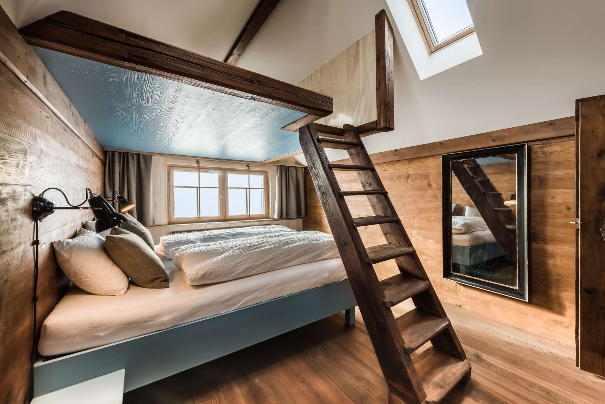 Weitere Schlafmöglichkeit liegen direkt unter dem Dachgiebel und in den