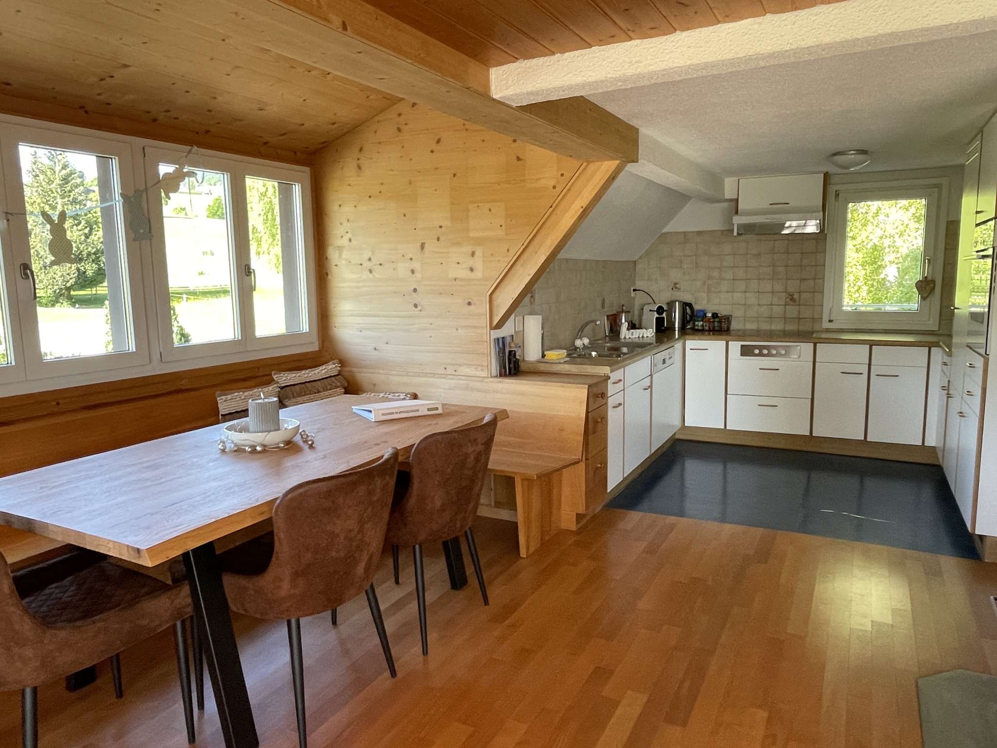 Lage & Umgebung: Wanderwege starten direkt vor der Tür, der Bodensee ist nur 5 km entfernt. In Heiden gibt es ein Freibad mit Sommerkino, das Appenzeller Heilbad liegt gleich in der Nähe. Coop, Migros und ein Volg mit langen Öffnungszeiten sorgen für gute Einkaufsmöglichkeiten.