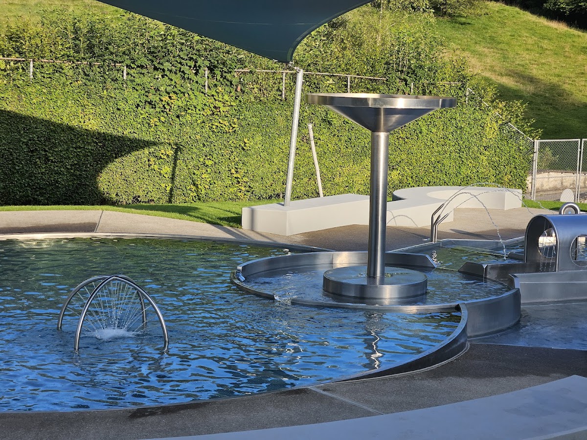 Pluspunkte werden auch für die grosszügigen Garderoben verteilt. Für eine erhöhte Privatsphäre gibt es zusätzliche Einzelkabinen. Auch das Restaurant kann sich sehen lassen. Eine grosse schattige Terrasse und Snacks bis hin zu Menüs laden auch ohne zu baden zum Verweilen ein!