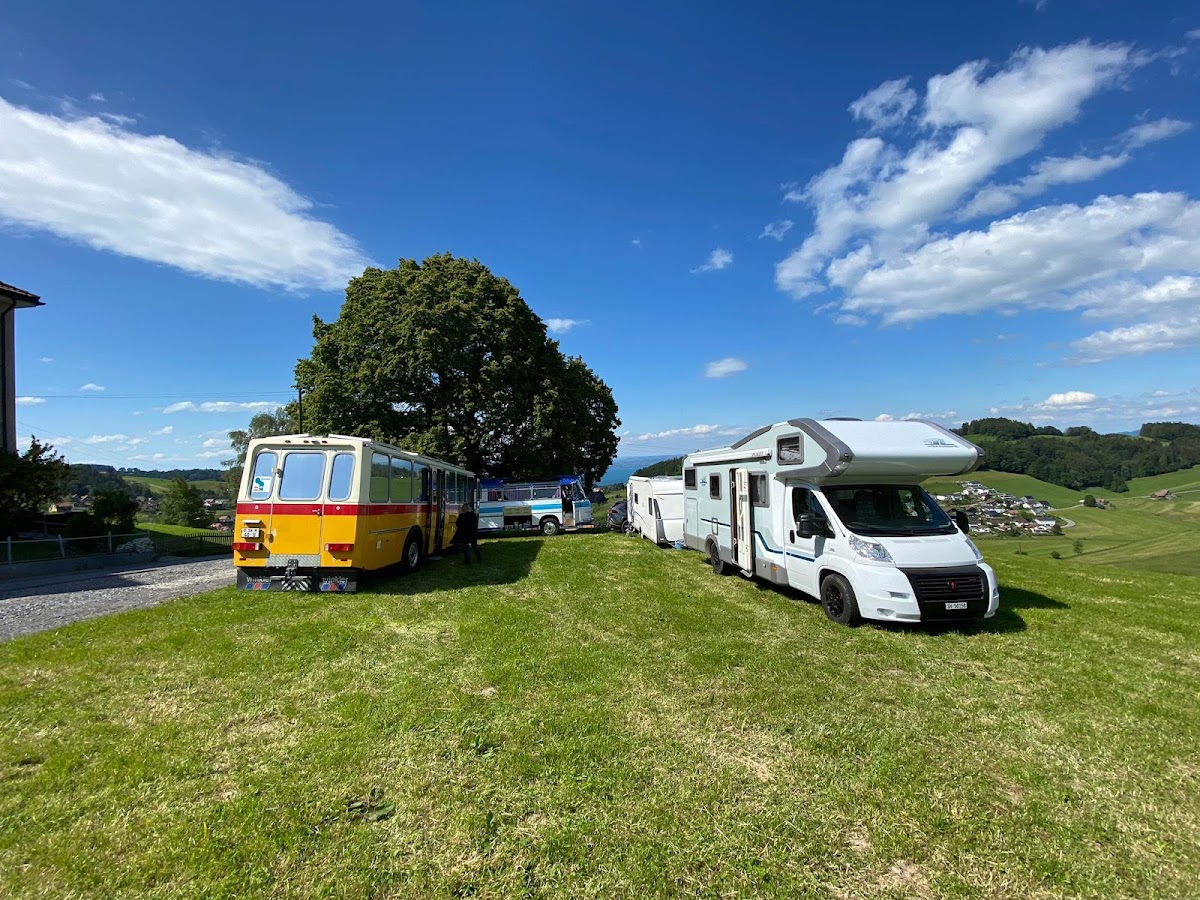 Unter der Linde vor dem Hof steht ein Campingplatz zur Verfügung – mit herrlicher Aussicht auf das Dorf Heiden und den Bodensee. Dusche und WC sind im Haus nebenan verfügbar. Interessierte melden sich direkt bei Fabienne und Christoph Kappeler.