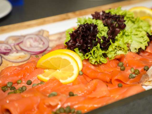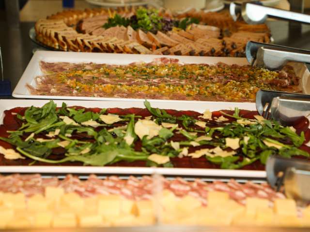 Gemischte Salate, Mostbröckli, Appenzeller Käsewürfel, geräucherte Forellenfilets und Rauchlachs, Siedfleischsalat und vieles mehr.