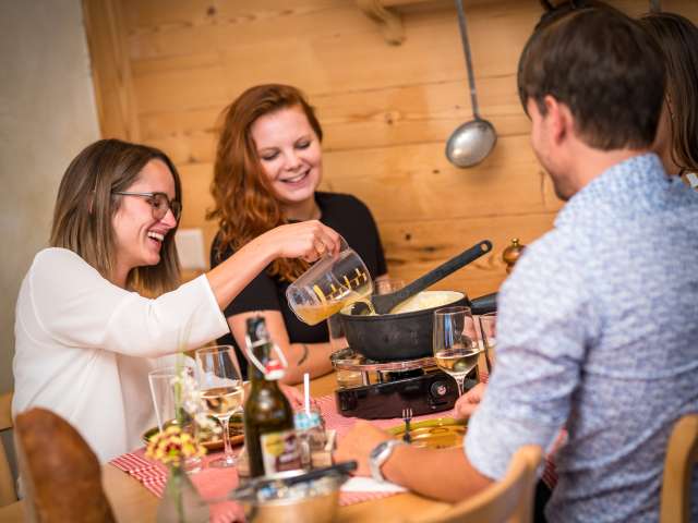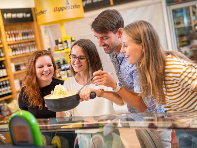 At the Appenzeller demonstration cheese dairy you are spoilt for choice! You can select your own mix of fondue cheeses at the counter, choose the other ingredients and prepare your fondue at the table with the help of one of our expert hosts.
