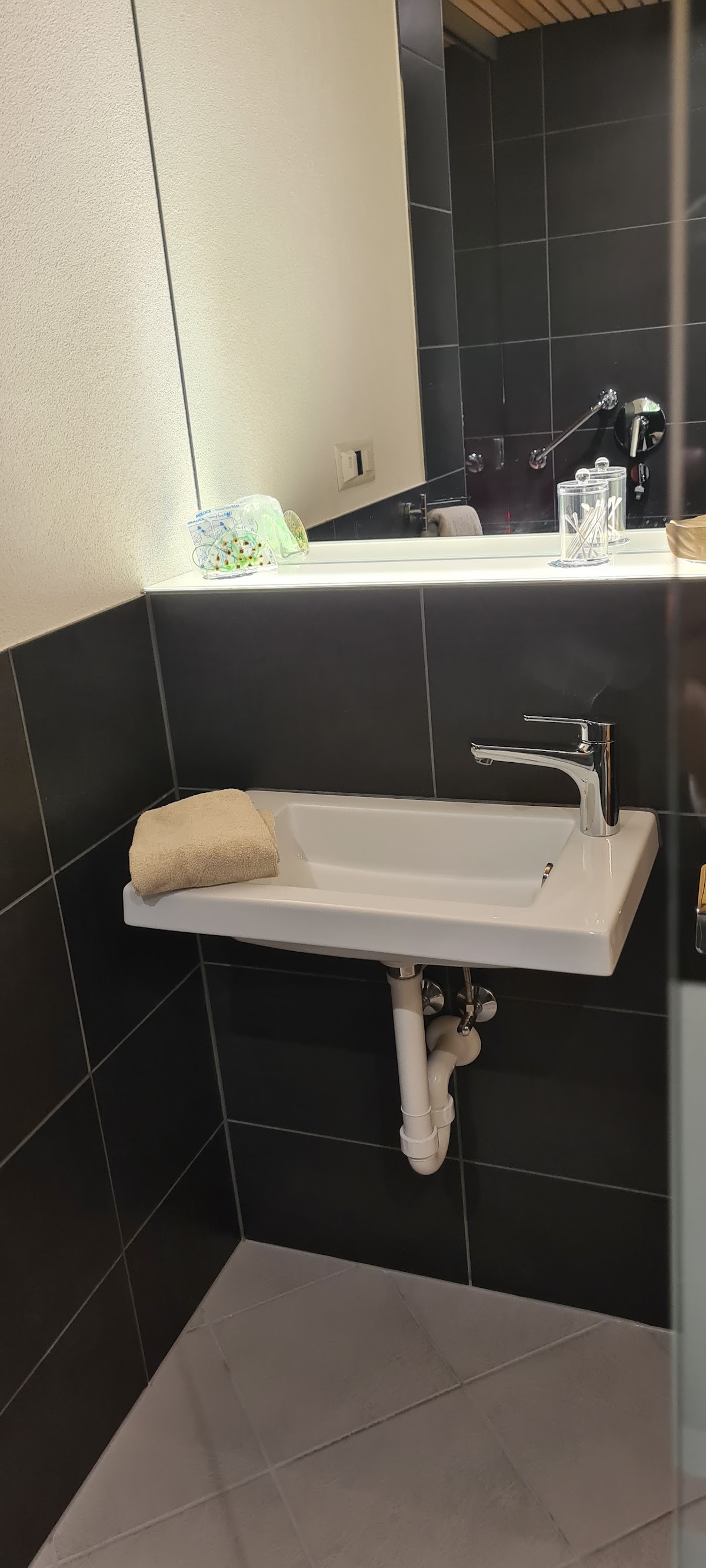 The FloatingOase in Bühler features two individual basins (width 170 cm, length 230 cm, depth 47 cm, salt-water level approx. 30 cm) which can be used by one or two people. Pre-booking required. Each unit has a small changing room, toilet, shower and of course a large basin for floating in. The basin is emptied out after each use, the salt solution is channelled through several stages of a treatment system, and the whole bathing area is cleaned.