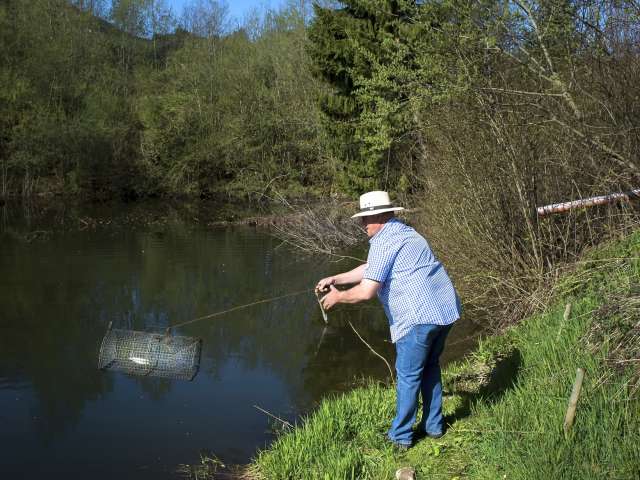 Other fish living in the three ponds that are fed by their own spring include pikeperch, large trout and feed fish such as rudd and tench as well as Swiss crayfish. A part of this area is to be designated as a nature reserve. Among the species living here are yellow-bellied toads, midwife toads, various salamander species, kingfishers, kites and herons.