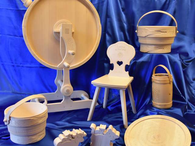 The products made by Stauffacher include ornaments, gifts and turned wooden items. There is a shop next to the workshop. Guided tours of the white cooperage workshop are also offered by appointment.