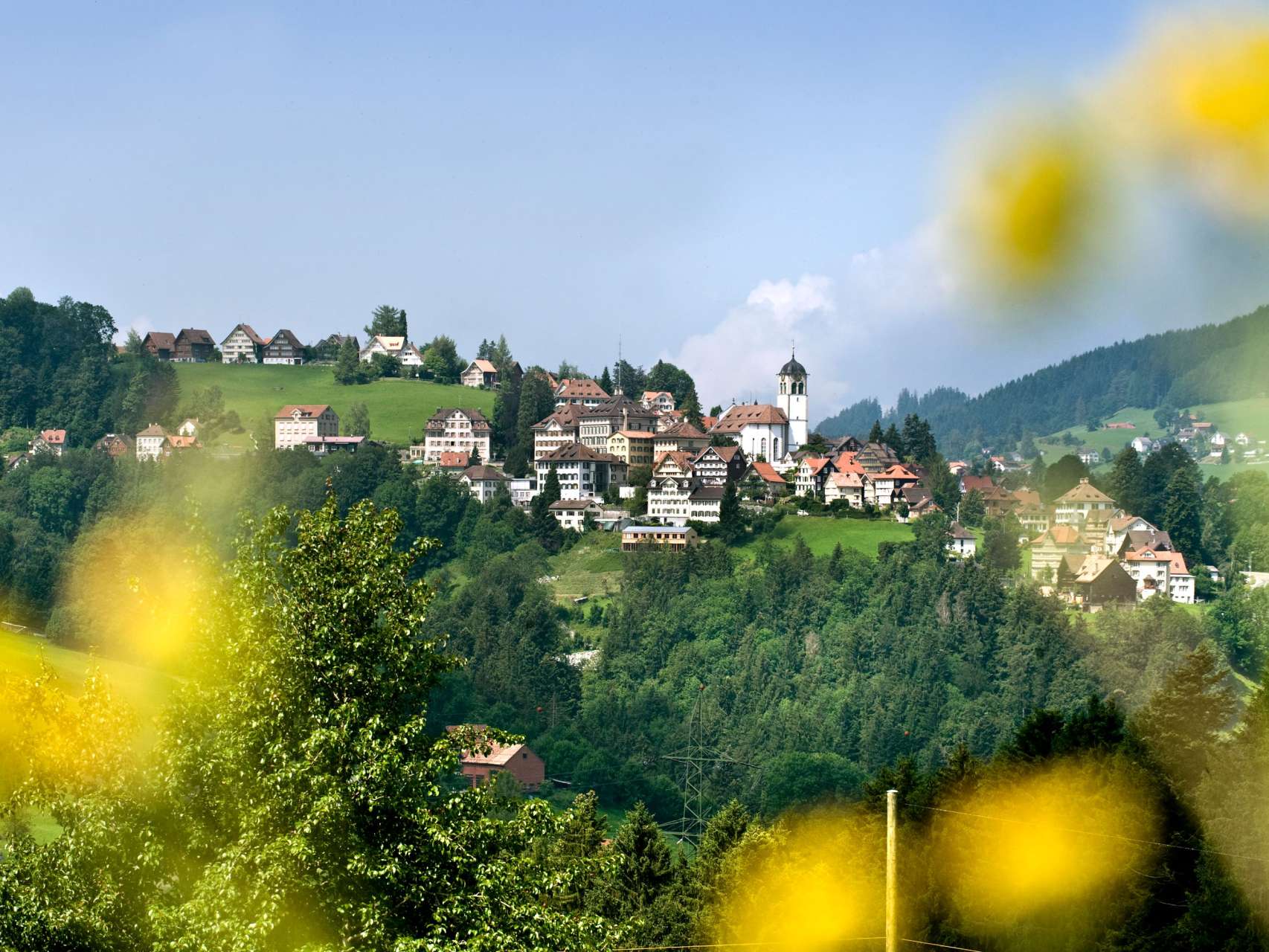 Your FLYER electric bicycle will await you at Romanshorn station, and the tour commences on the cycle path along the idyllic shores of Lake Constance. In Rorschach harbour you will board the nostalgic mountain train with your FLYER electric bicycle and travel 523 altitude metres up to the Biedermeier village of Heiden in just over 20 minutes. From Heiden, the tour (signposted no. 998) leads via Oberegg to the panoramic restaurant on St. Anton mountain, where you can change your battery (closed on Wednesdays). You will then cycle to the former cantonal assembly (“Landsgemeinde”) village of Trogen. From there you will head towards Speicher, where the route turns left for Teufen just before the village centre. From Teufen you will continue to ride through the Appenzell hills to Haslen. Leaving Haslen, you will head for Stein. The Appenzell demonstration cheese dairy is worth a stop! Here you can also change the battery. After crossing the 98-metre-high Haggen bridge you will reach St. Gallen town.