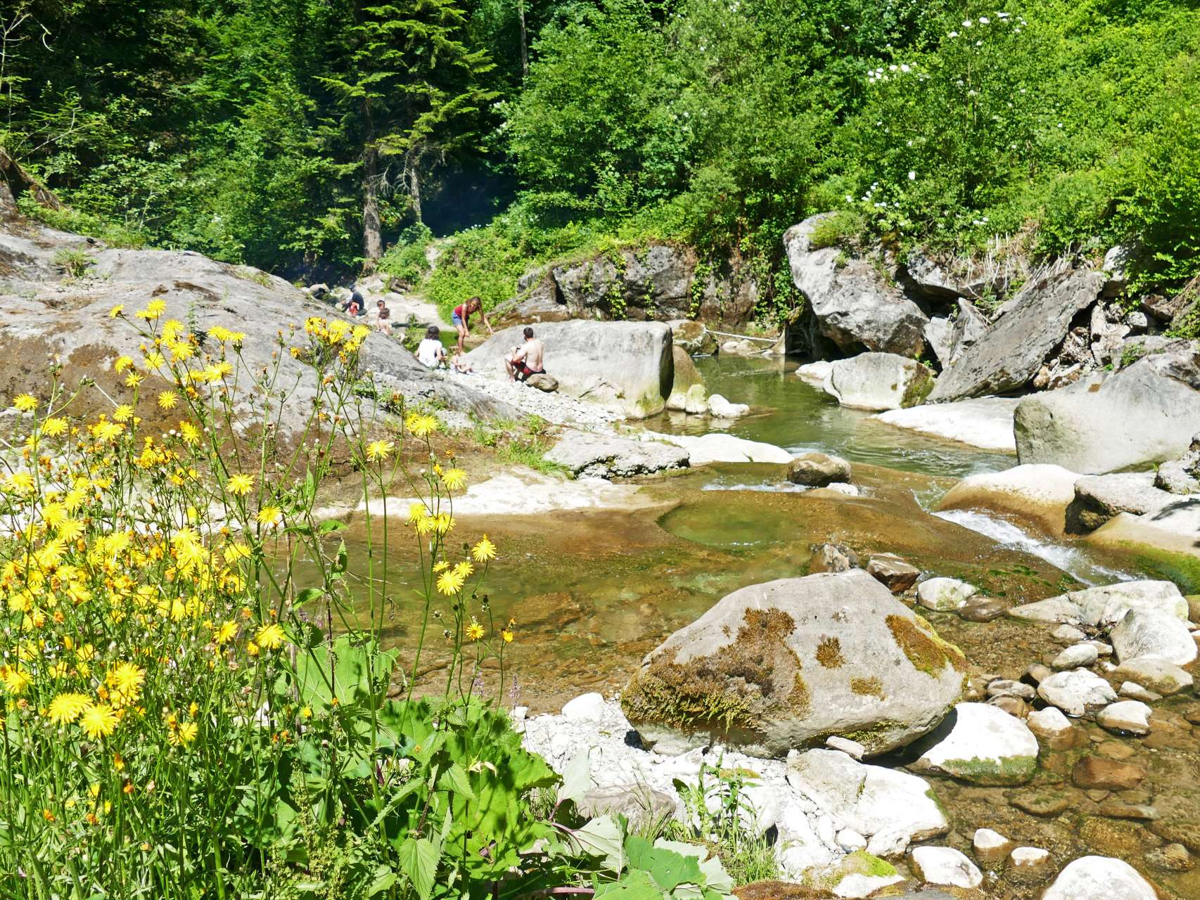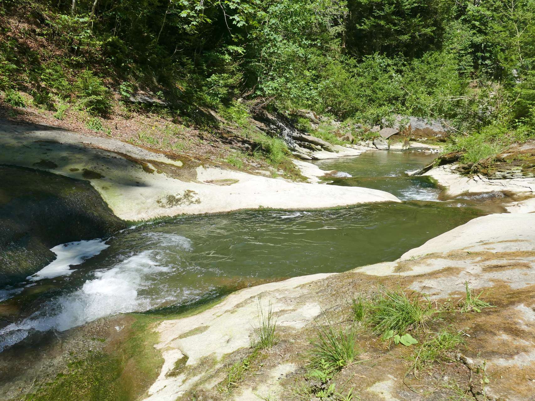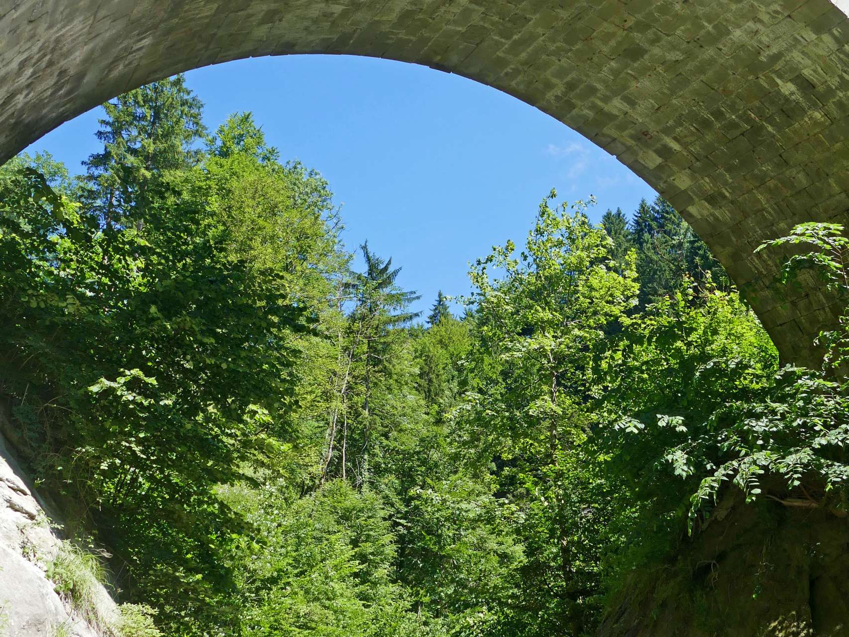 The route starts at the old bathing point in Trogen. On the first steep part of the hike, there are holds and ropes to hang onto in the rocks. It is possible to switch to the parallel hiking trail between the Chastenloch restaurant and Zweibruggen at any time. After that, the path becomes narrower, wilder and firmer again. The route ends at the Achmühle. From there you can walk up to Speicherschwendi or Eggersriet.