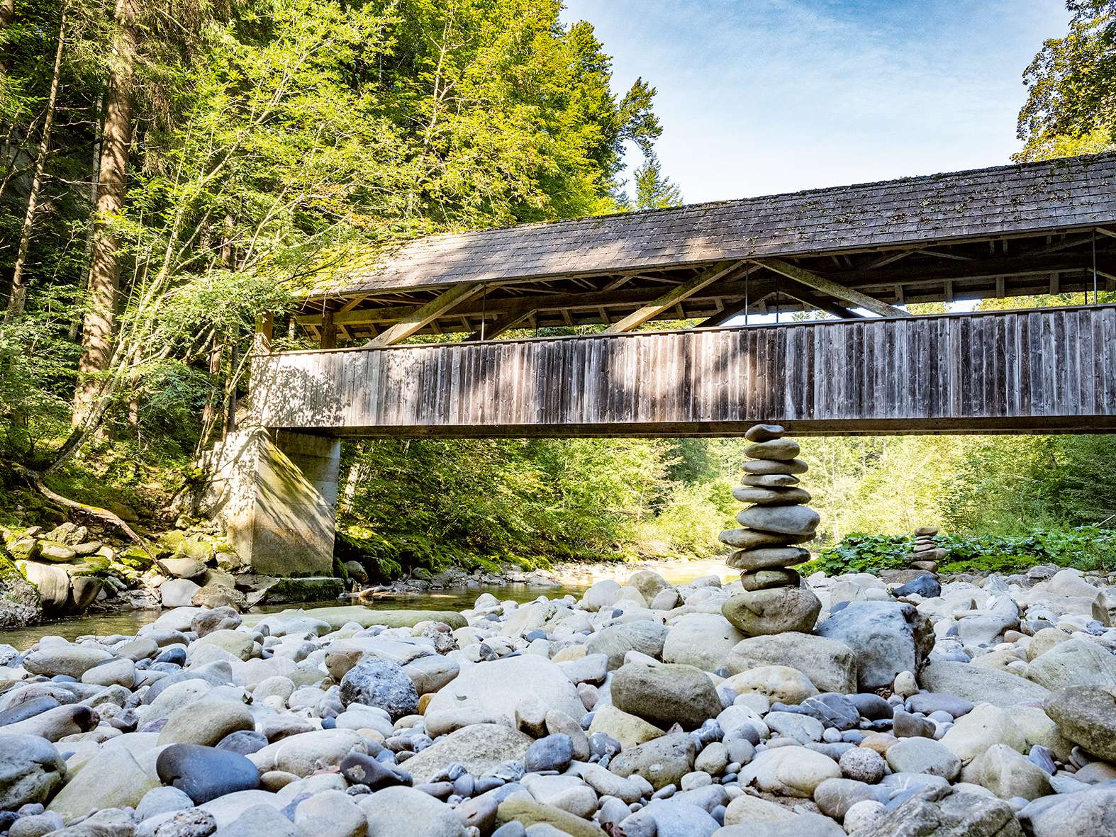 Enjoy the peace and quiet out on the hills of Chäseren and Aemissegg and admire the view as you listen to the murmur of the Tüfenbach stream in the deep ravine below – the hike from Schönengrund to St. Peterzell reveals the charms of the Neckertal valley. The route leads through St. Gallen territory, but the Ausserrhoden municipality of Schönengrund is also close by, forming a cross-border unit with the St. Gallen forest. The Tüfenbach stream flows in between.