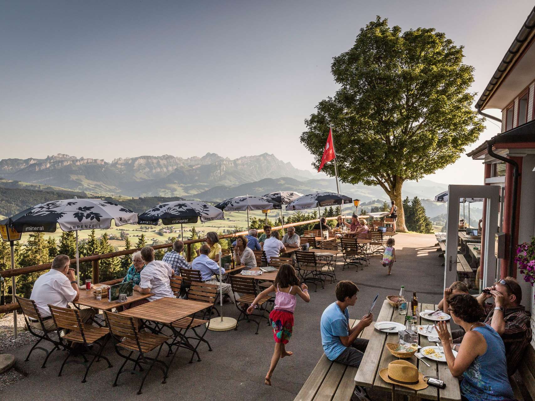 This relatively demanding tour starts in Heiden. The route leads past the public swimming pool to Oberegg and then onwards and upwards to St. Anton mountain. From here, you can enjoy wonderful views in all directions. The trail then leads to Landmark and via a quite steep ascent up Surugge to Mount Gäbris, at 1240 metres above sea level. One of the most unforgettable panoramic views in the whole region is ample reward for the hard work of getting here! The rest is a rather leisurely downward walk to Gais.
