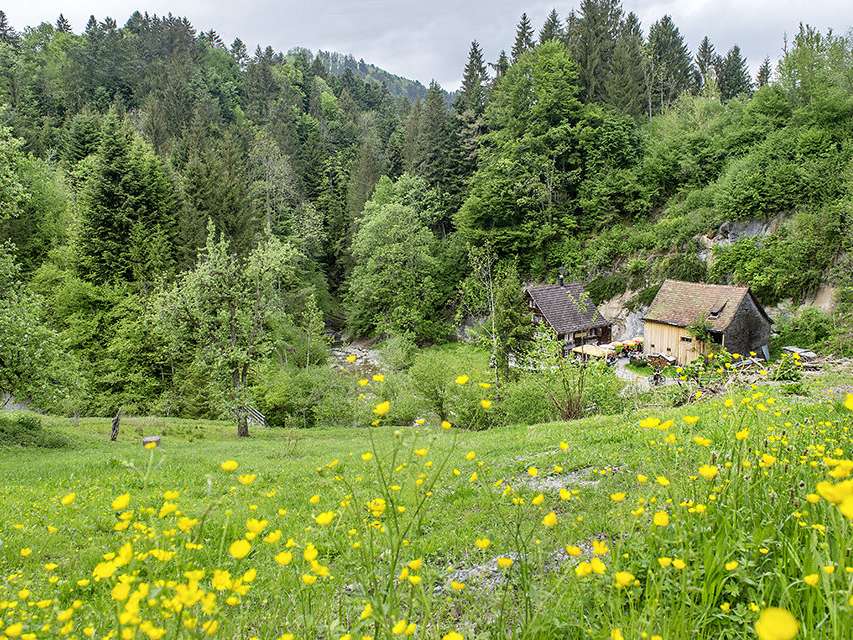 The route starts in Speicher and leads down into the Goldachtobel ravine and to Chastenloch, where the Säglibach stream flows into the Goldach river. Through forests and across meadows, the way leads on to Rehetobel, where beautiful inns entice weary walkers to rest. Breathtaking views await at the end of the ascent up to Gupf mountain.
