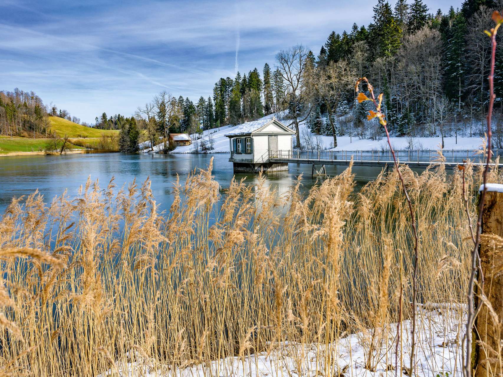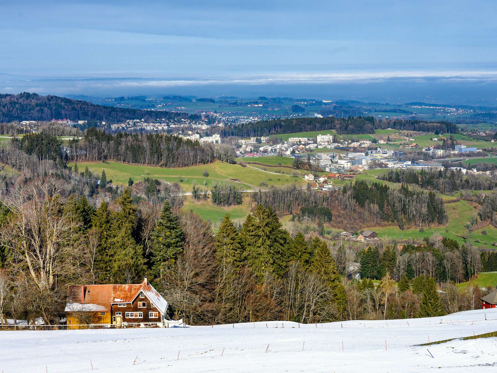 Out and about in the border area of Appenzell Ausserrhoden and St. Gallen between winter and spring. The hike leads from Speicher via Speicherschwendi to Wenigerweiher, very close to the historic scene of the Battle of Vögelinsegg. Today, the area is a protected nature reserve. Wenigerweiher lake is a popular hiking destination among city dwellers, but also appeals to families thanks to the interesting information boards about the natural sites.