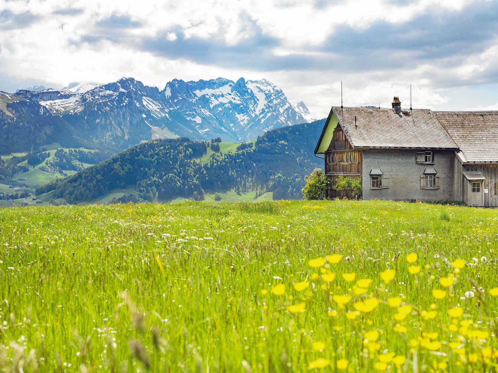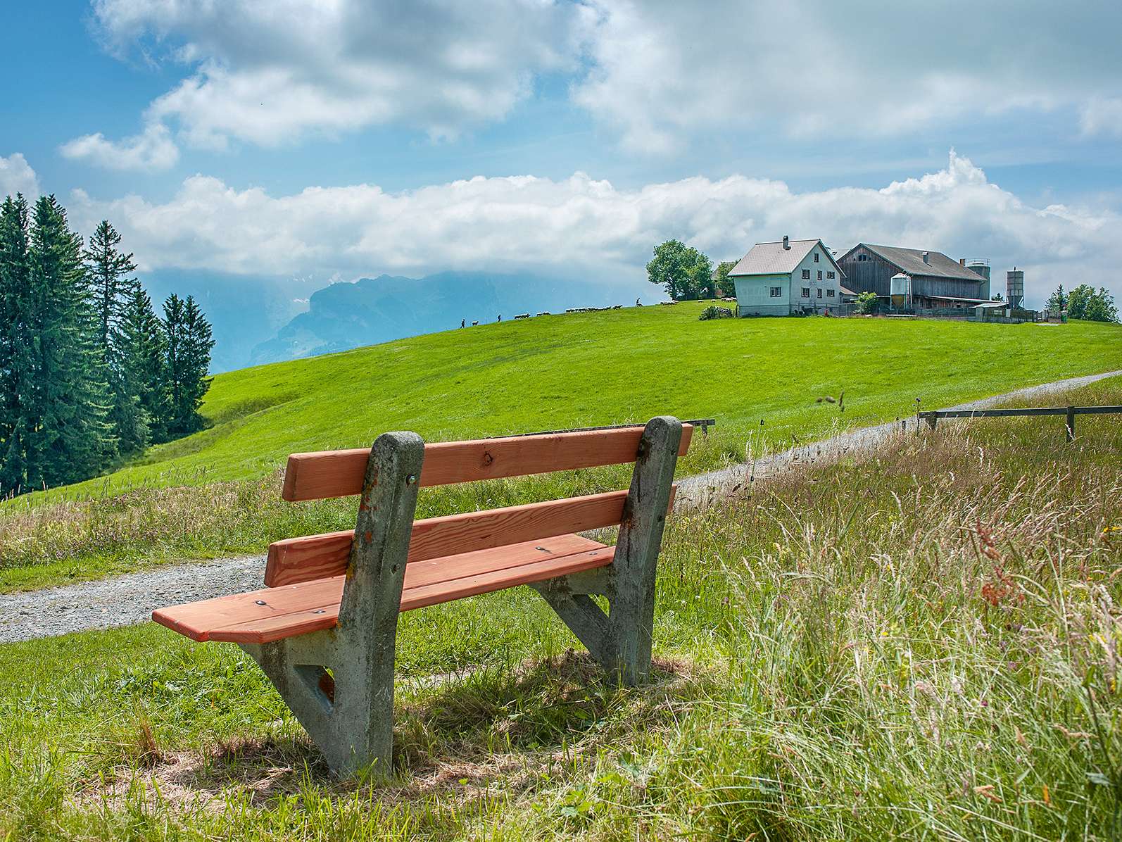 The route at the beginning of the hike is not easy to determine. But it’s worth a detour via the Hohegg lookout point in Gais. The hike is full of splendid views as it is: the Alpstein panorama from the Hoher Hirschberg is simply magnificent. The varied trail leads past reed and moor areas, over roots in the Schachenwald forest and across lush meadows in Strahlhütten and Mendle.