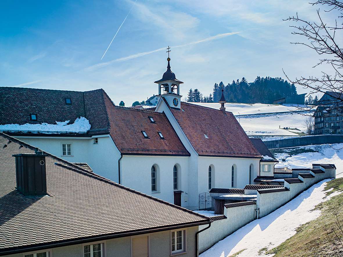 In Walzenhausen village winter meets spring: in the valley the snow has gone and a mild breeze is blowing, while the hills are still white. The hike, partially across St. Gallen soil, is very varied. It leads to a ruin from the 15th century and past vineyards, and then verges into Innerrhoden with the convent of Grimmenstein. Above all, it offers sweeping vistas of Lake Constance, the Rhine Valley and beyond.