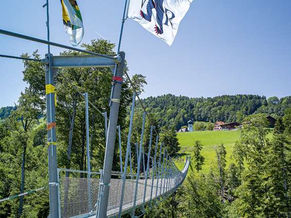 The new suspension bridge in Grub is the main attraction on the hike from Heiden up to Rossbüchel and back via Halten and Hartmannsrüti. The dramatic views deep into the Mattenbachtobel ravine, but also the beautiful vistas over the hills of the Appenzell Foreland towards Lake Constance and the neighbouring countries, are well worth the journey. In several inns along the way weary walkers can quench their thirst and satisfy their hunger.