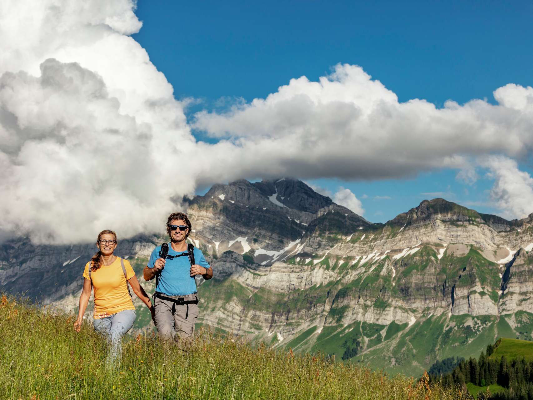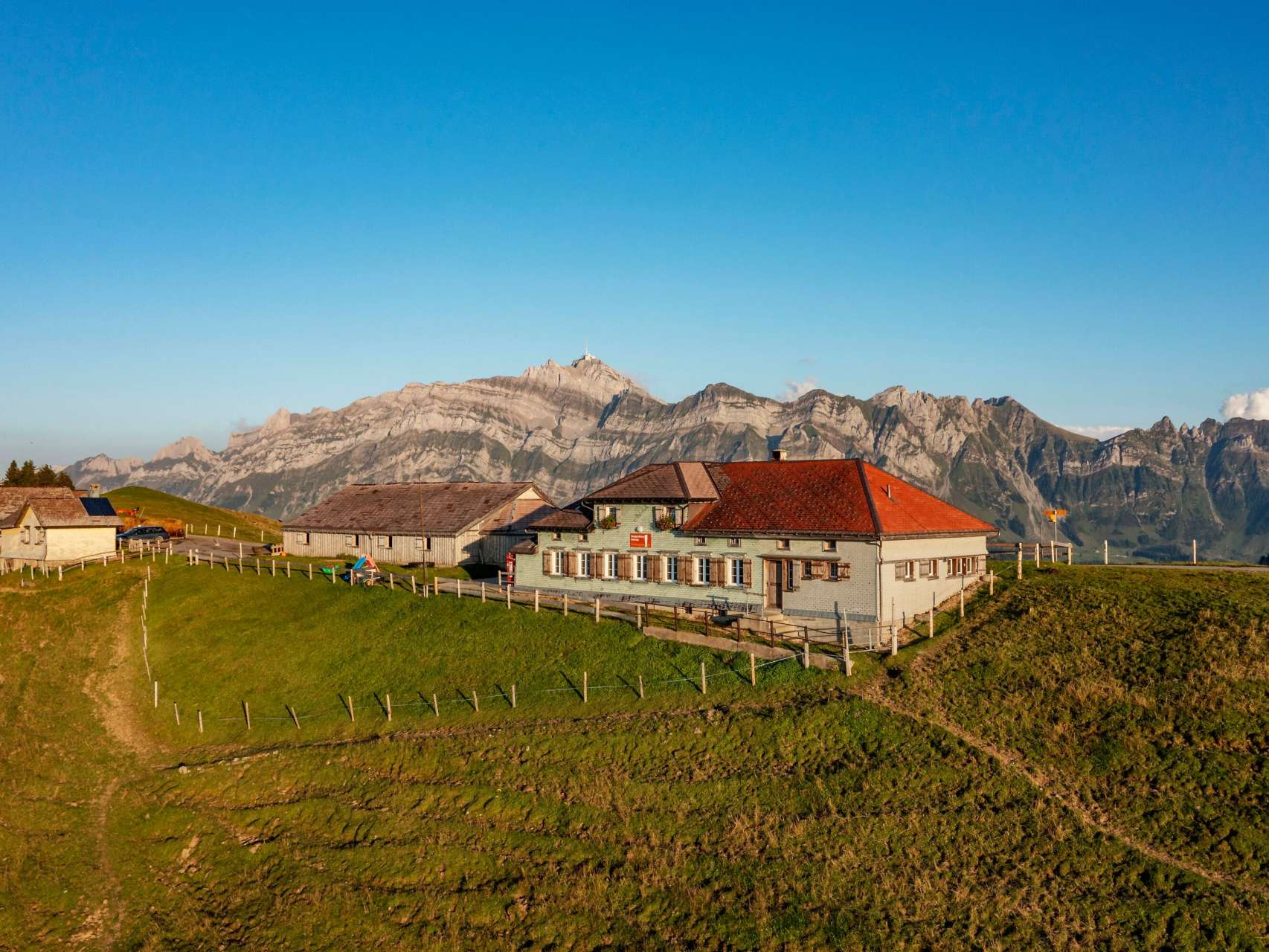 Start your experience in Urnäsch and take the bus to the Rossfall. This is where the panoramic hike begins with a steep ascent across meadows and along forests to the Hochalp restaurant. Here you can fortify yourself with a snack platter of homemade and regional specialties and a refreshing drink while enjoying the view of the Alpstein. The trail then leads through the Bruggerenwald forest back into the valley to Urnäsch, where you can round off your day in a restaurant or at the Appenzell folk museum.