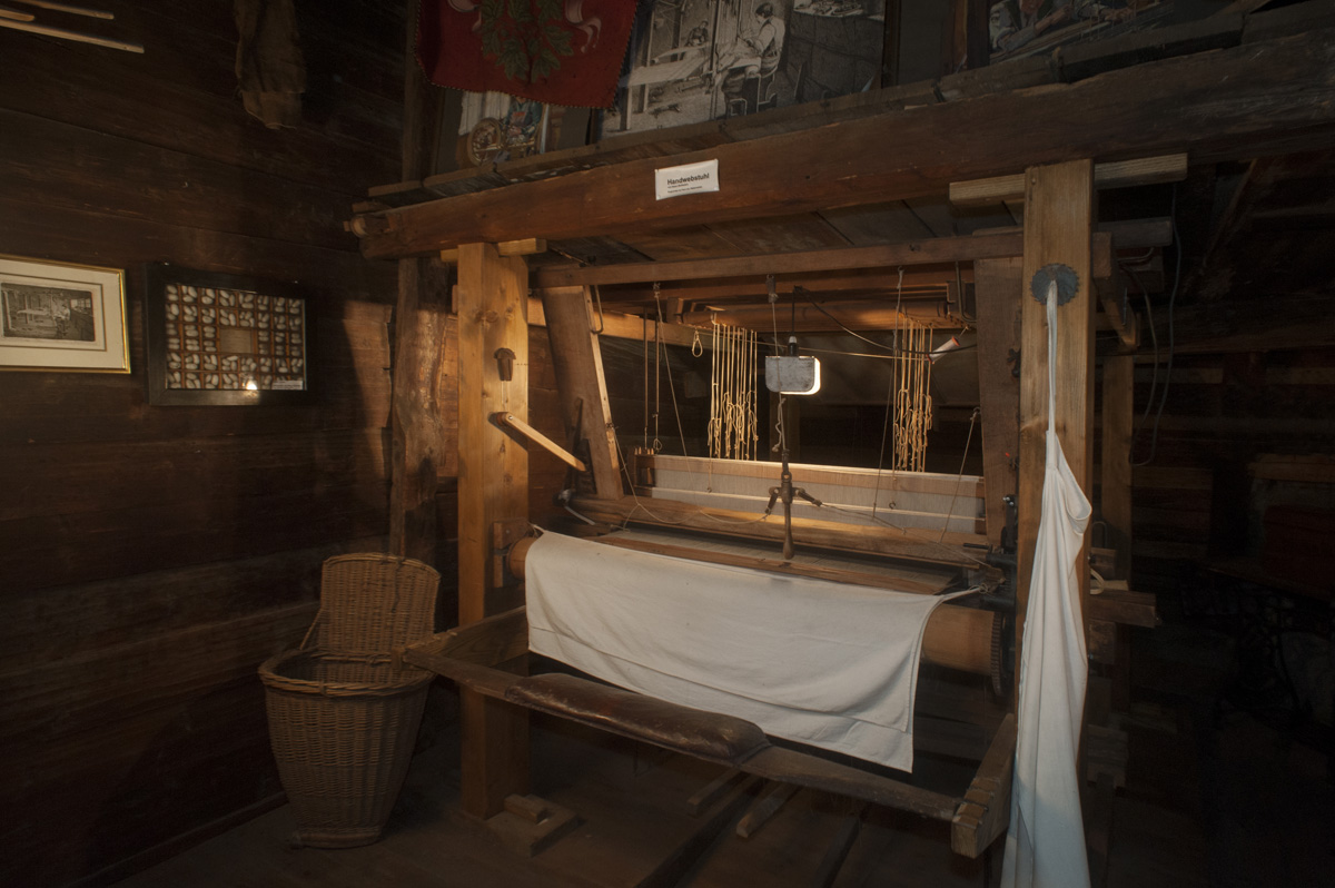 This is how our ancestors lived. The collection is dedicated to the lives of the silk weavers and farmers, and among the exhibits is an old loom. The fruit press with cider mill in the cellar is a reminder of the fruit and wine growing traditions in the region. Next to the arbour with toilet is the old kitchen and the interior of the inn «Zur alten Krone». In a side room, a wedding wardrobe and the village flag show the artistic side of the Wolfhalden people. Rustic wooden stairs lead up to the rooms on the upper floors, the «Vorbrugg», main bedroom and a bedroom under the roof – all illustrating how basic the living conditions were in the past. Plenty of historic documents from the municipal archives bear witness to day-to-day life and work in the region back in the day.