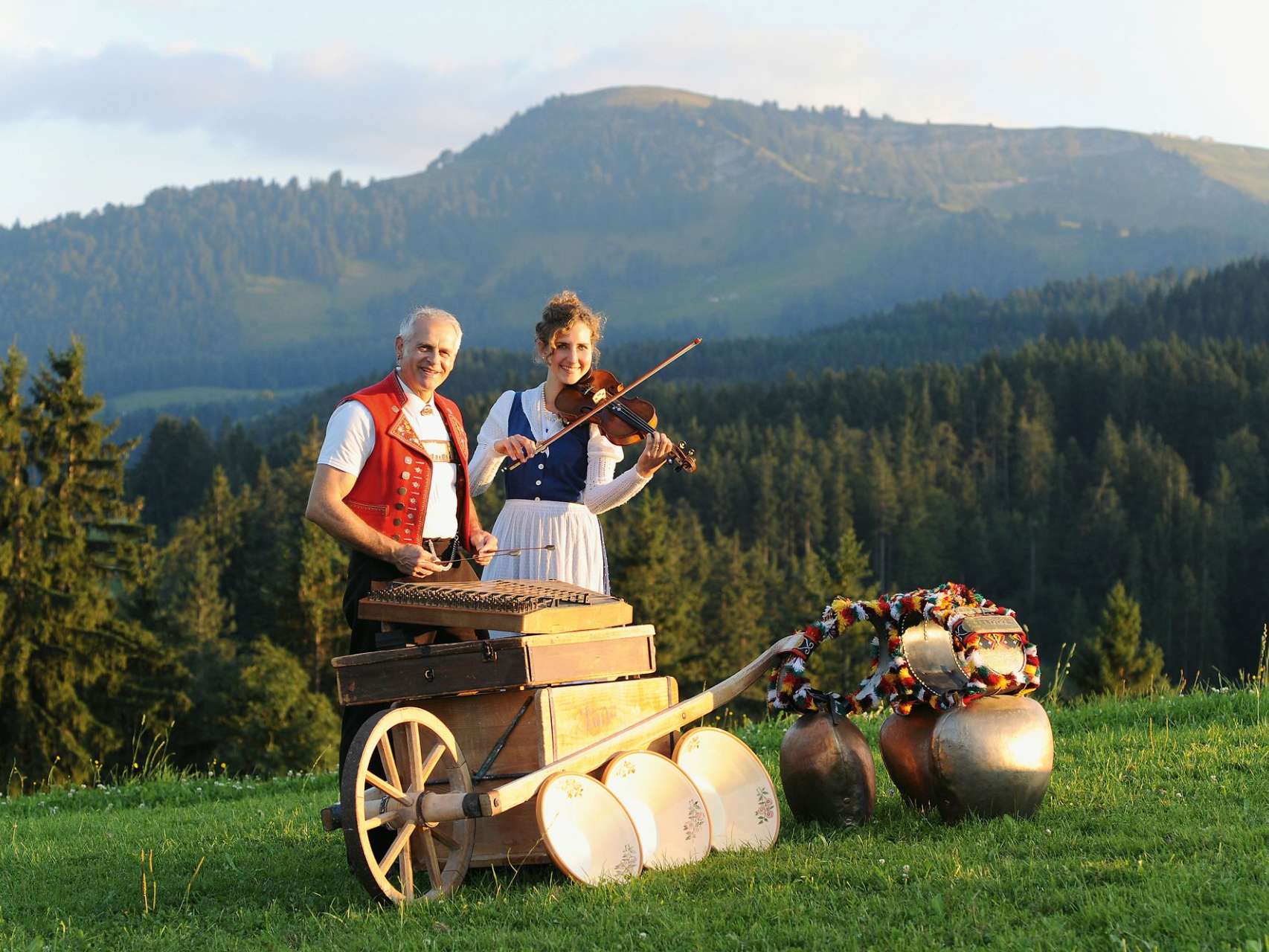 Appenzell string music with hammered dulcimer, double bass, cello and two violins, recently quite often also with accordion, is renowned the globe. Possibly the most famous string music ensemble are the Alder family from Urnäsch. They have performed string music together since 1884 and today the different line-ups of the group include 3rd-, 4th- and 5th-generation members of the family.