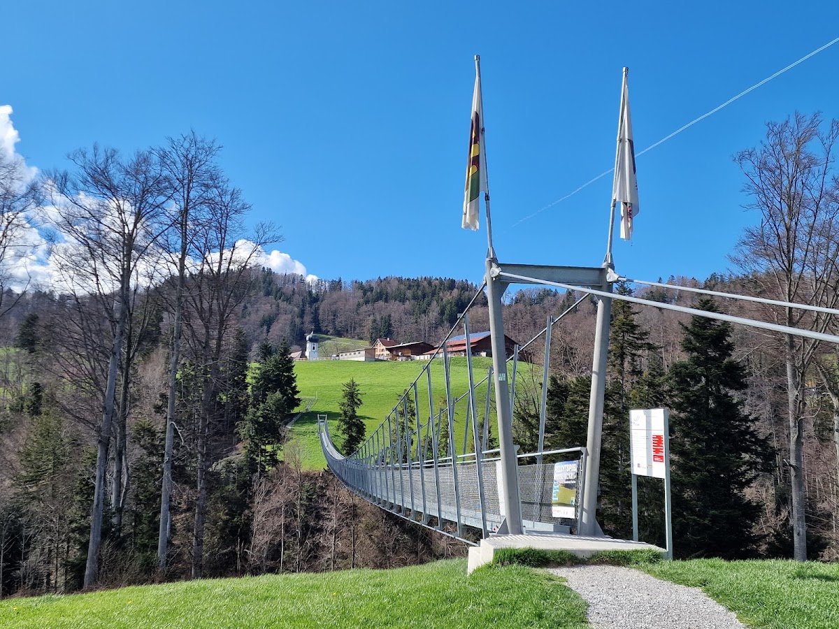 Since April 2019 the two villages of Grub AR and Grub SG have been connected once again via an attractive, 180-metre-long rope bridge across the Mattenbach stream. The popular hiking route across the canton border from Frauenrüti Grub AR to the Grünau Grub SG region can therefore be walked again in its entirety.